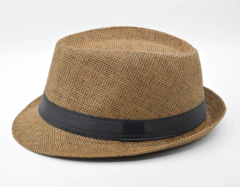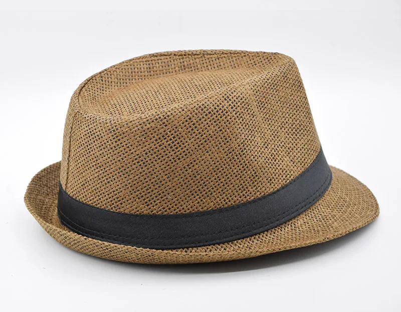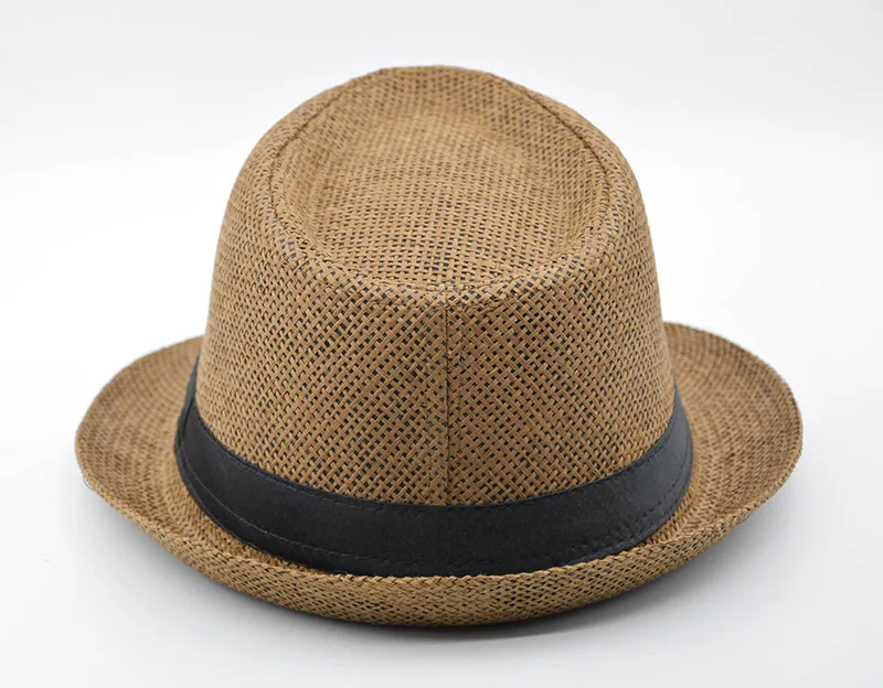 Fashion Unisex Women Men Straw Hat Ribbon Curling Brim Jazz Fedora Hat Panama Gangster Cap Outdoor Beach Parent-Child Sun Hats