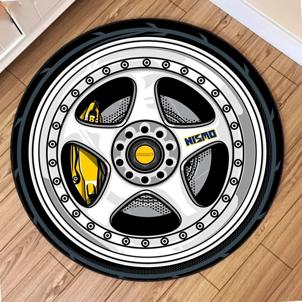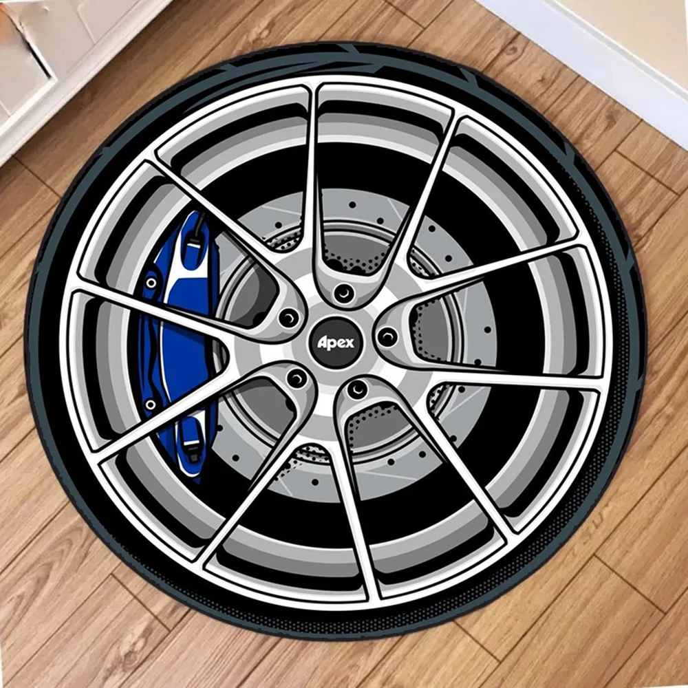 Fashion Wheels Printing Round Carpet Living Room Bedroom Kitchen Bathroom Floor Mat Soft Circle Rug Birthday Decor