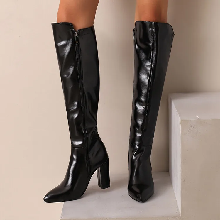 Fashion Women's Knee-High Boots 2024 Winter Warm Shoes Female Pointy Party Office High Heels Outdoors Long Boots Size 44 45 46