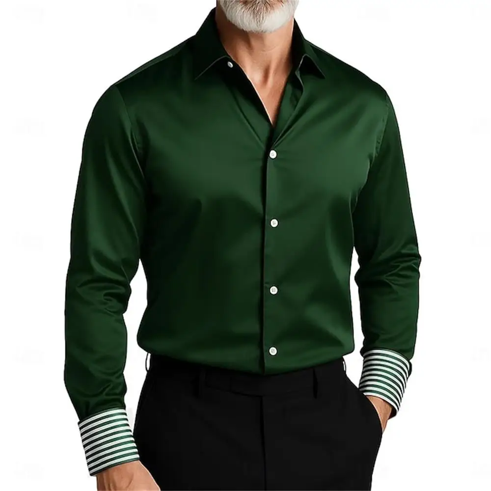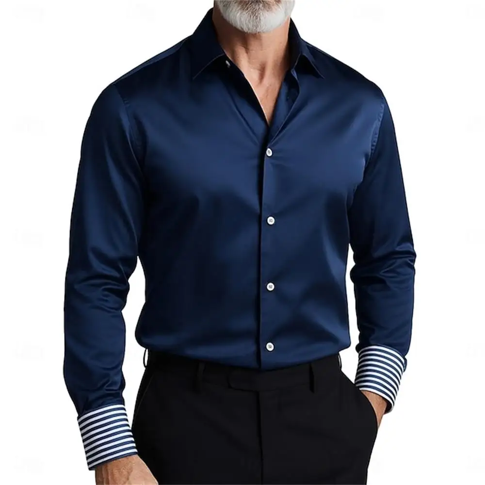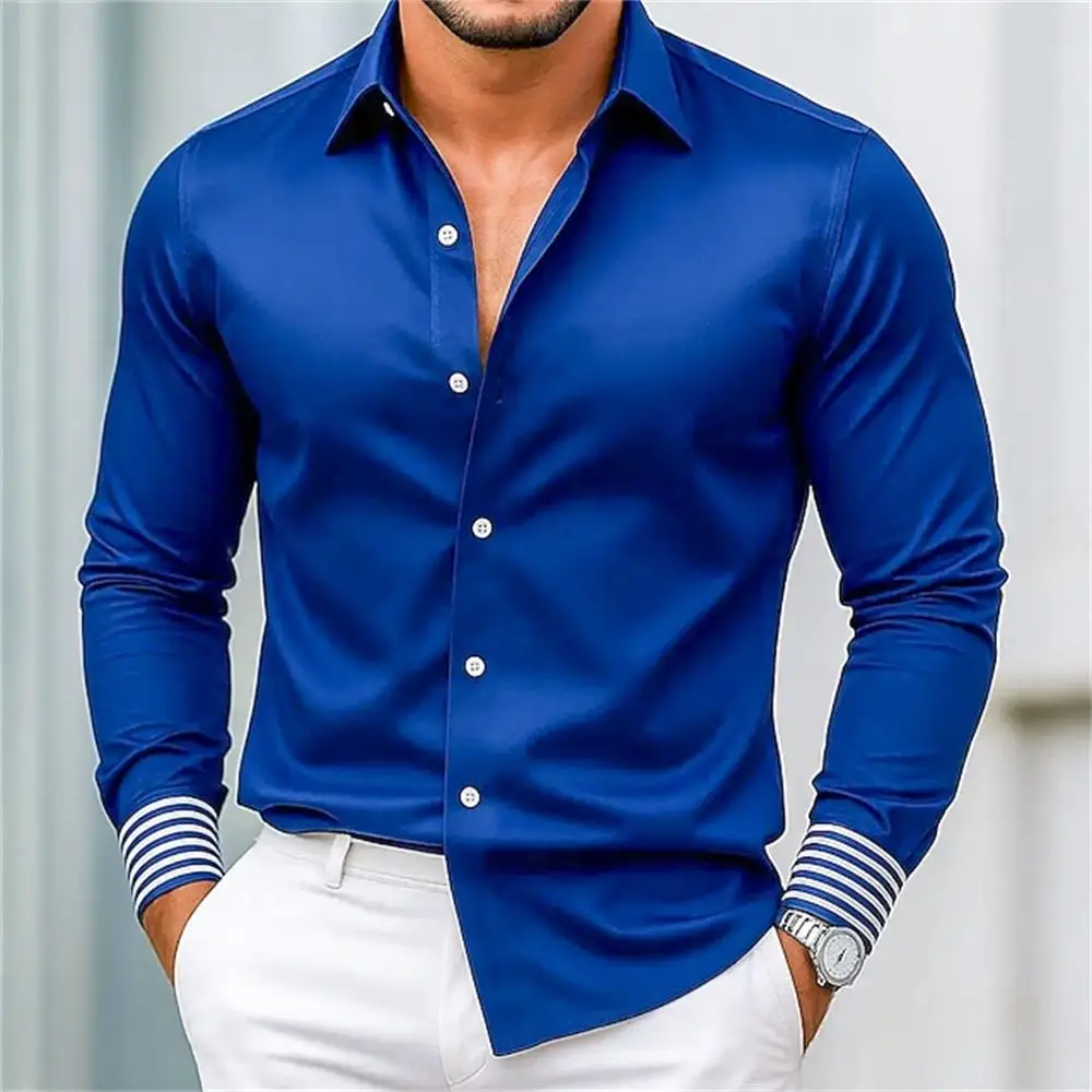 Fashionable men's long sleeved shirt with slim fit collar button solid color casual party plus size men's shirt