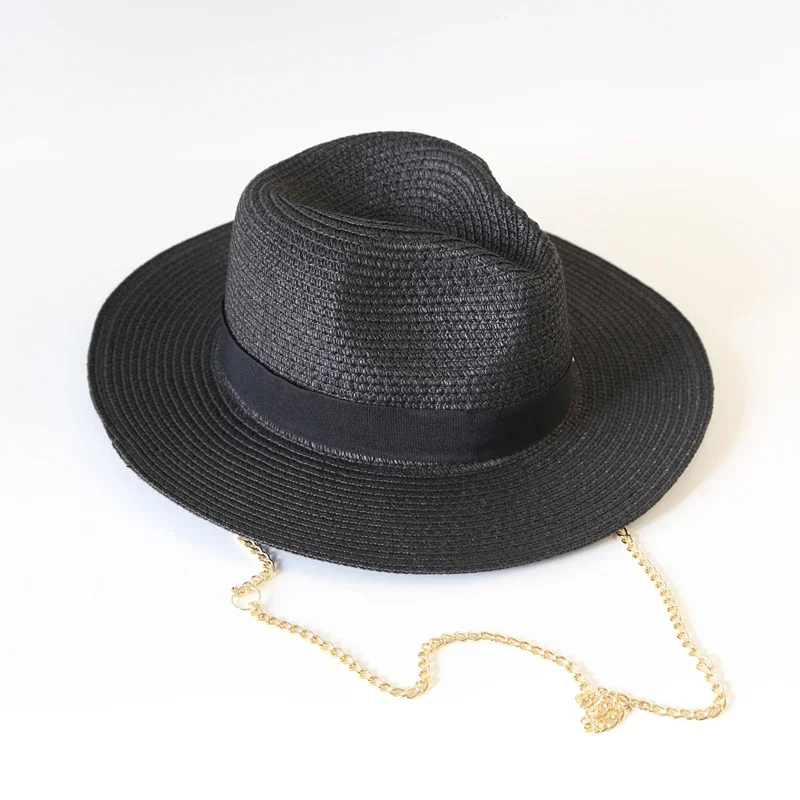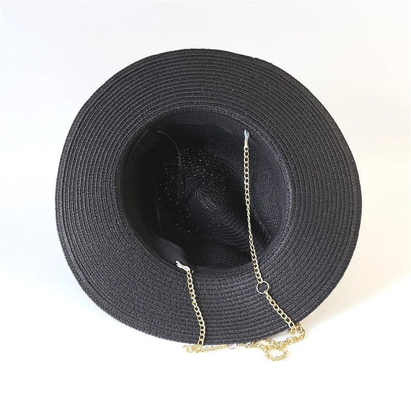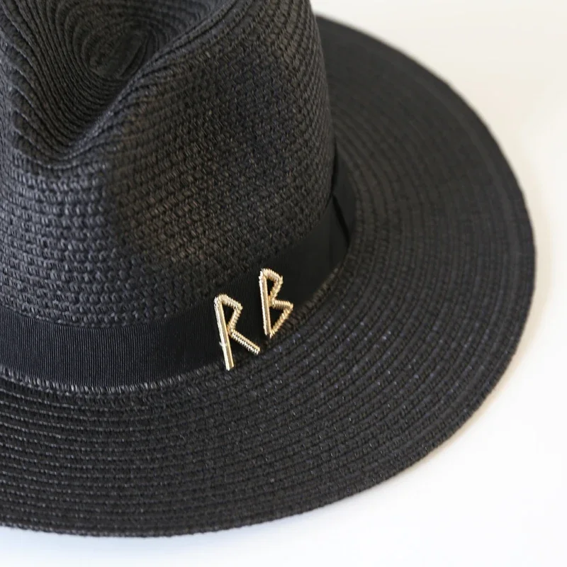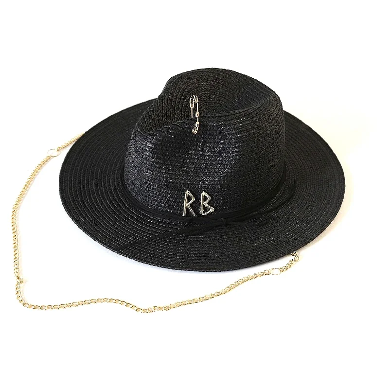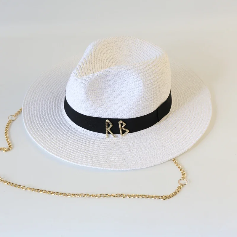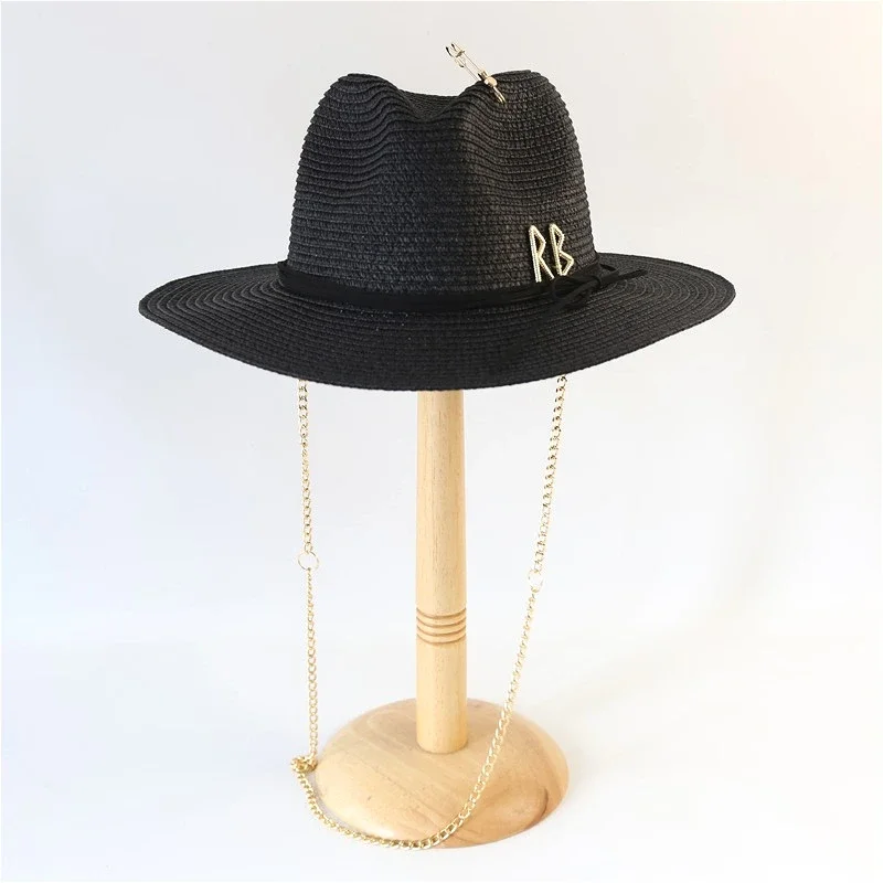 Fashionable Metal RB Letter Straw Hats for Women Men Summer Outdoor Holidays Beach Sun Hat Straw Hats for Women Fashion Panama