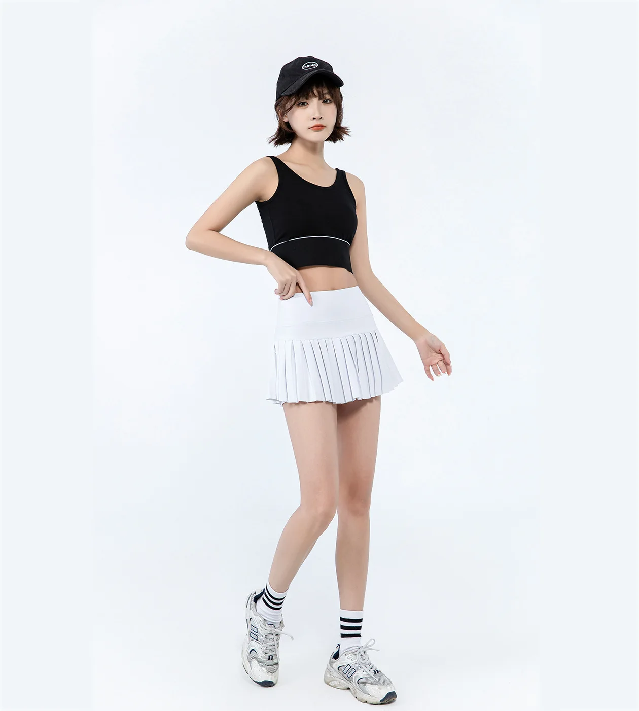 fashionable summer sports shorts women's pleated skirt anti glare short skirt running outdoor fitness breathable tennis skirt