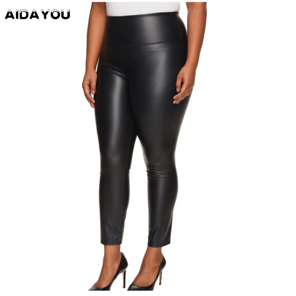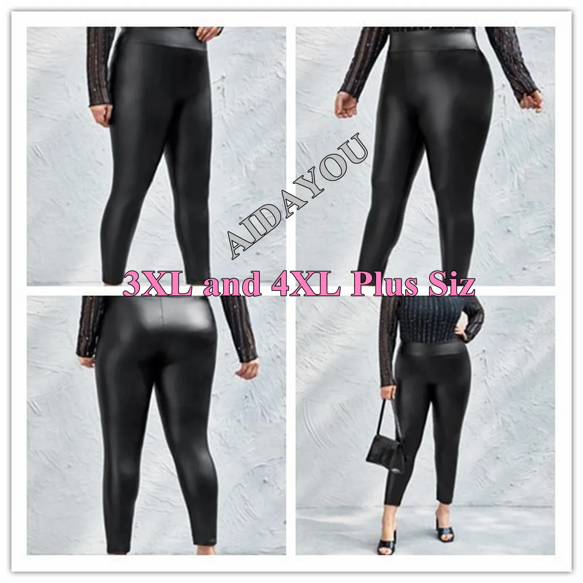 Faux Leather Plus Size Leggings for Women Big Size 5XL 6XL 7XL Black Girls Spandex Clothing Pleather PU Leggings