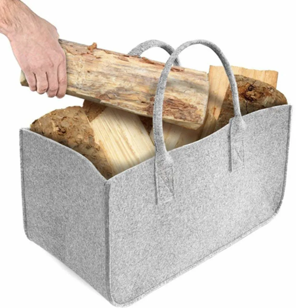 Felt Storage Bag for Fireplace Wood Organizer, Shopping Basket, Magazine Rack, Firewood Pocket, Home Storage Bags Holder