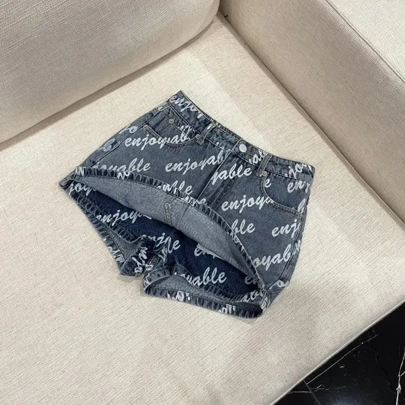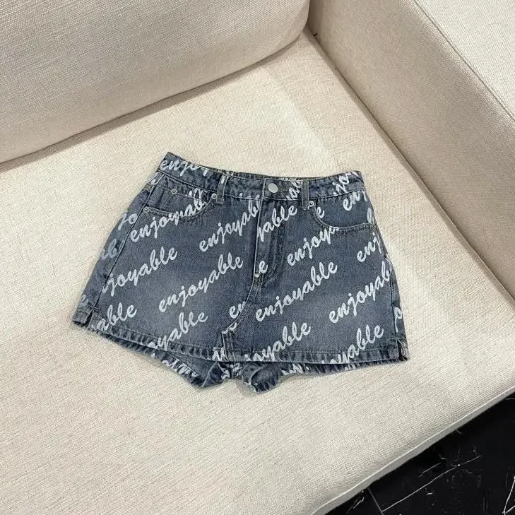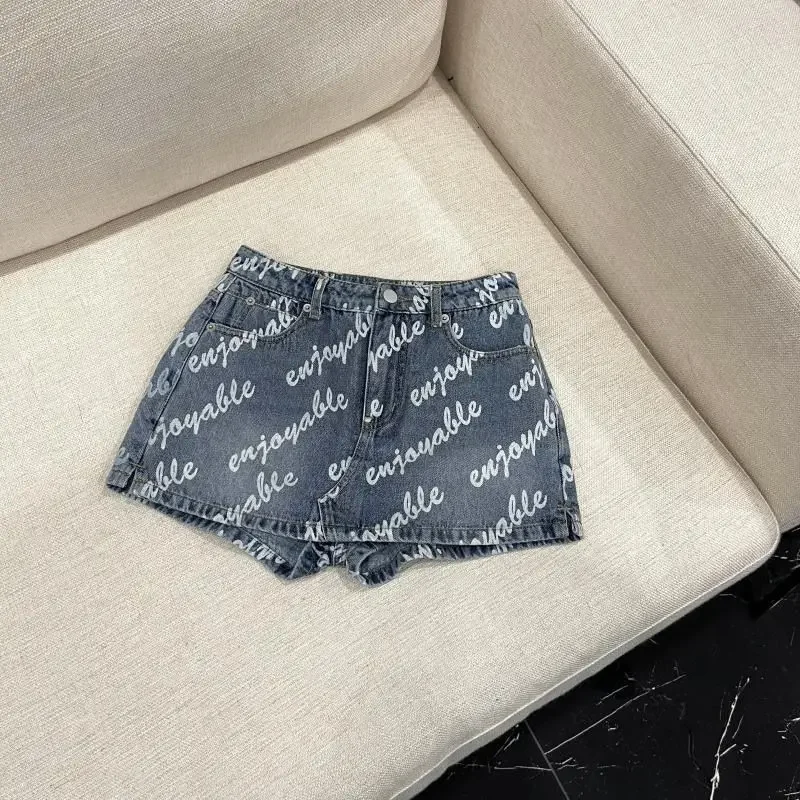 Female Sexy Vintage Letter High Waist A-line Skirt Summer All-match Fashionable Slim Buttons Zipper Denim Short Skirt Women