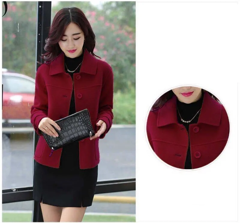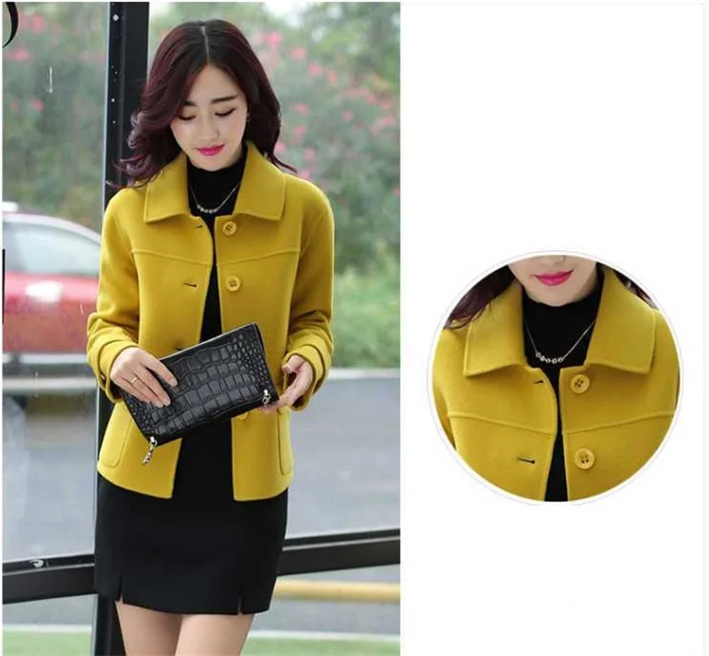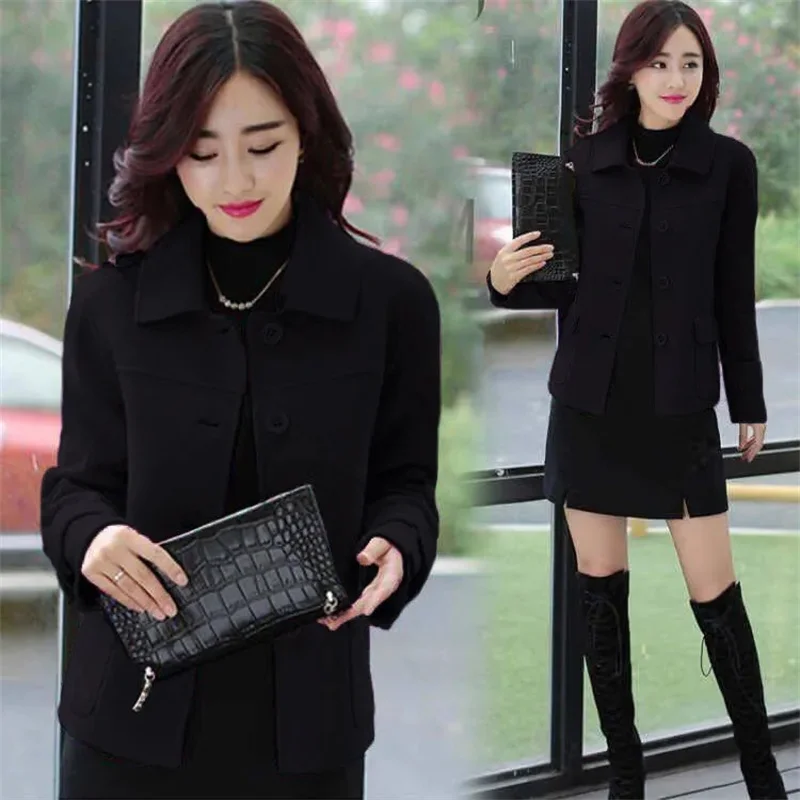 Female Woolen Coat Short Autumn 2024 Solid Color High-End Woolen Jacket Casual Single breasted Lapel Outerwearl