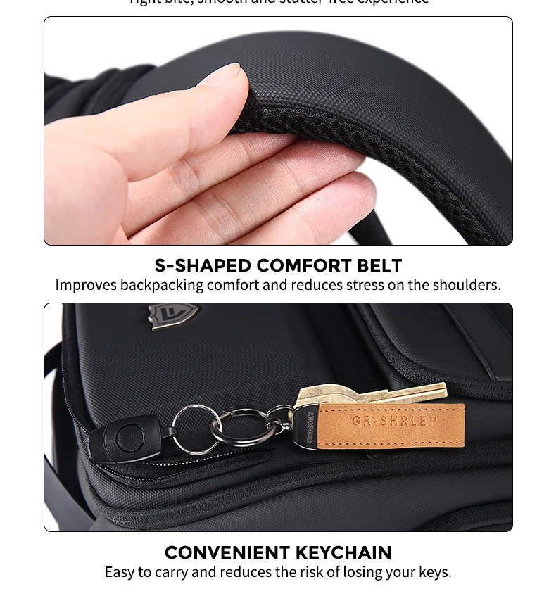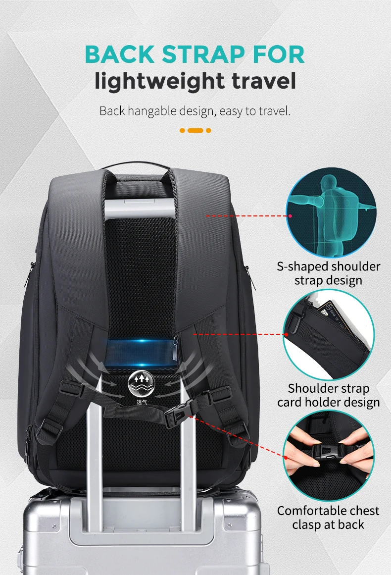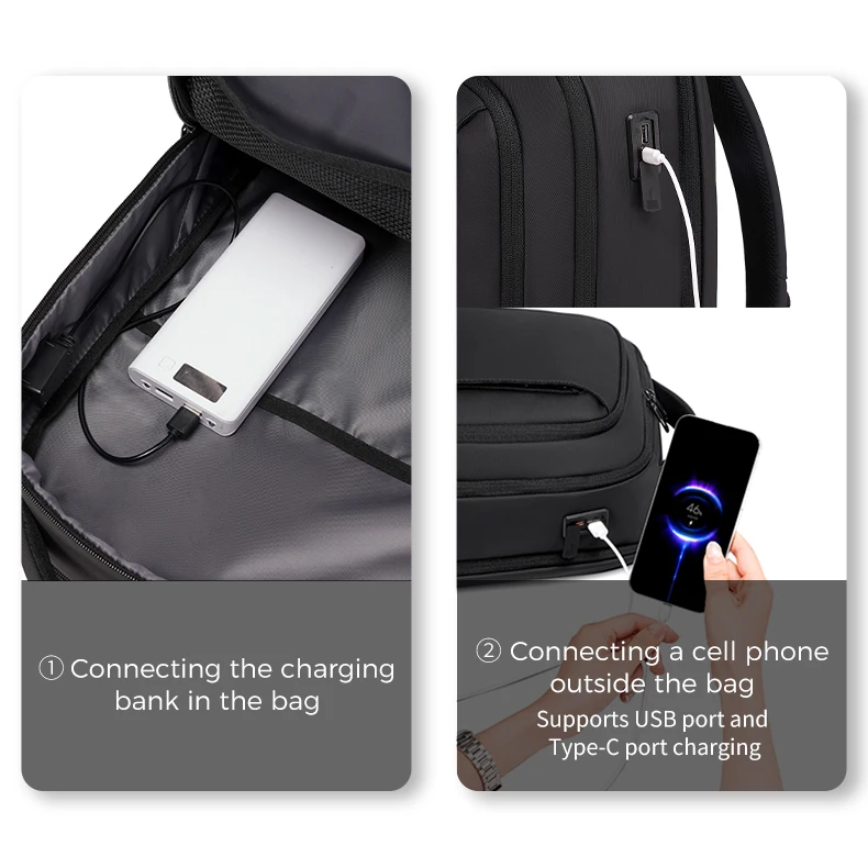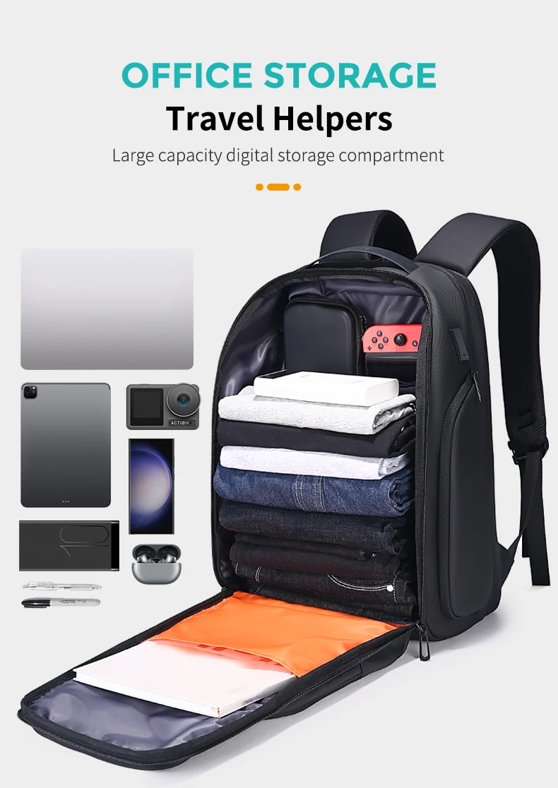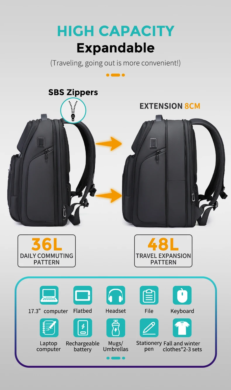 Fenruien Men 36L Business Backpack USB Waterproof Multi Pocket Backpacks Fit 17.3 Inch Laptop