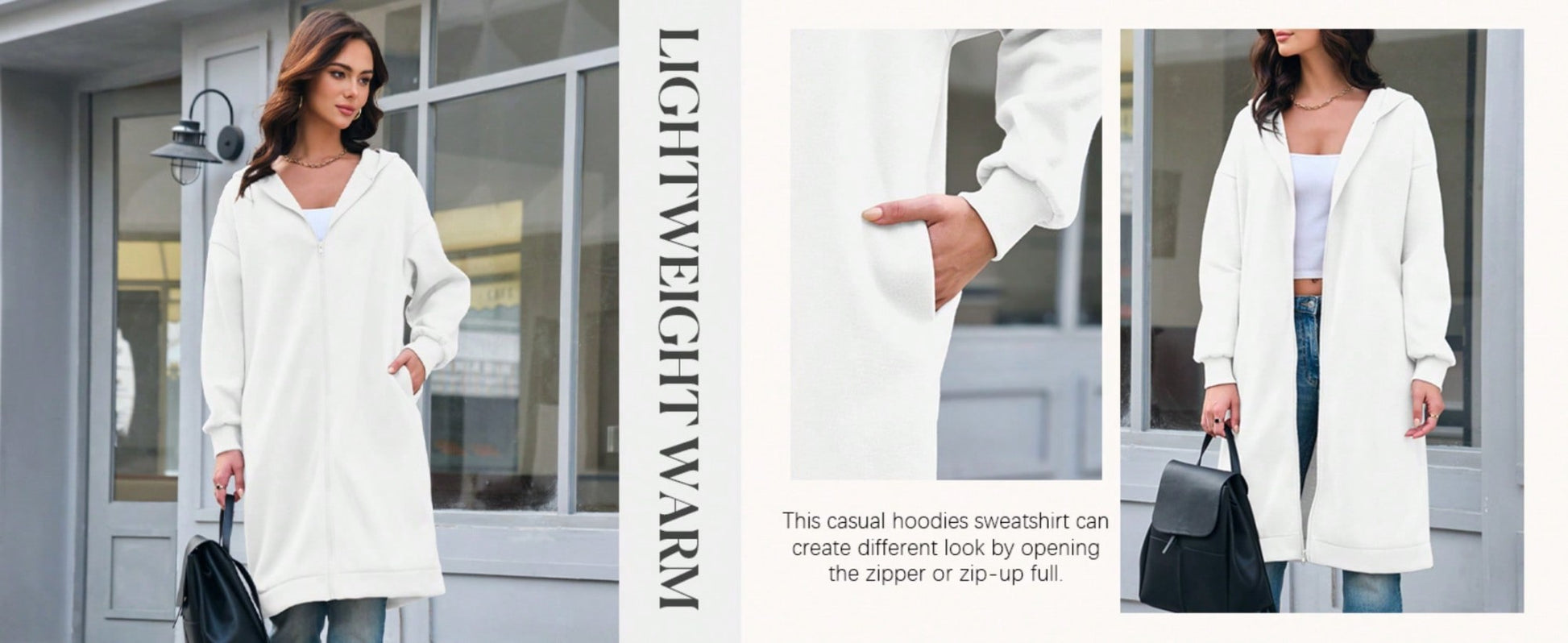 Womens hoodies with stretchy ,soft and comfortable fabric long hoodies features long sleeve,hooded, two side pockets and full-zip closure. Material: 75% Polyester 25% Cotton , warm enough for fall and early winter, tunic length fits good for most occasions Features: Zip front long hooded sweatshirt, two warm hand pockets, ribbed hem cuffs, loose fit fleece hoodie Women's Casual Fall Winter Lightweight Warm Fleece Lined Zip Up Hoodies Tunic Long Hooded Sweatshirt Jacket Coat Easy Care: Machine Wash, Hand Wash Recommend. Suitable for many occasion:school,office,shopping,club,date,daily wear,etc. Very soft warm fleece cardigan fit for any daily wear