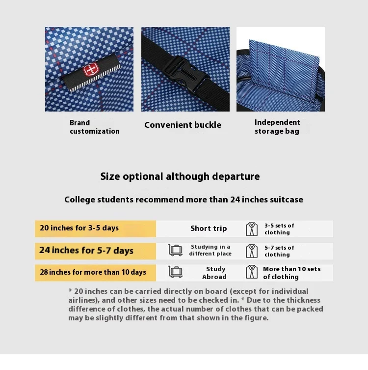 Available in 20/24 inch sizes, this suitcase provides flexibility for various travel needs.