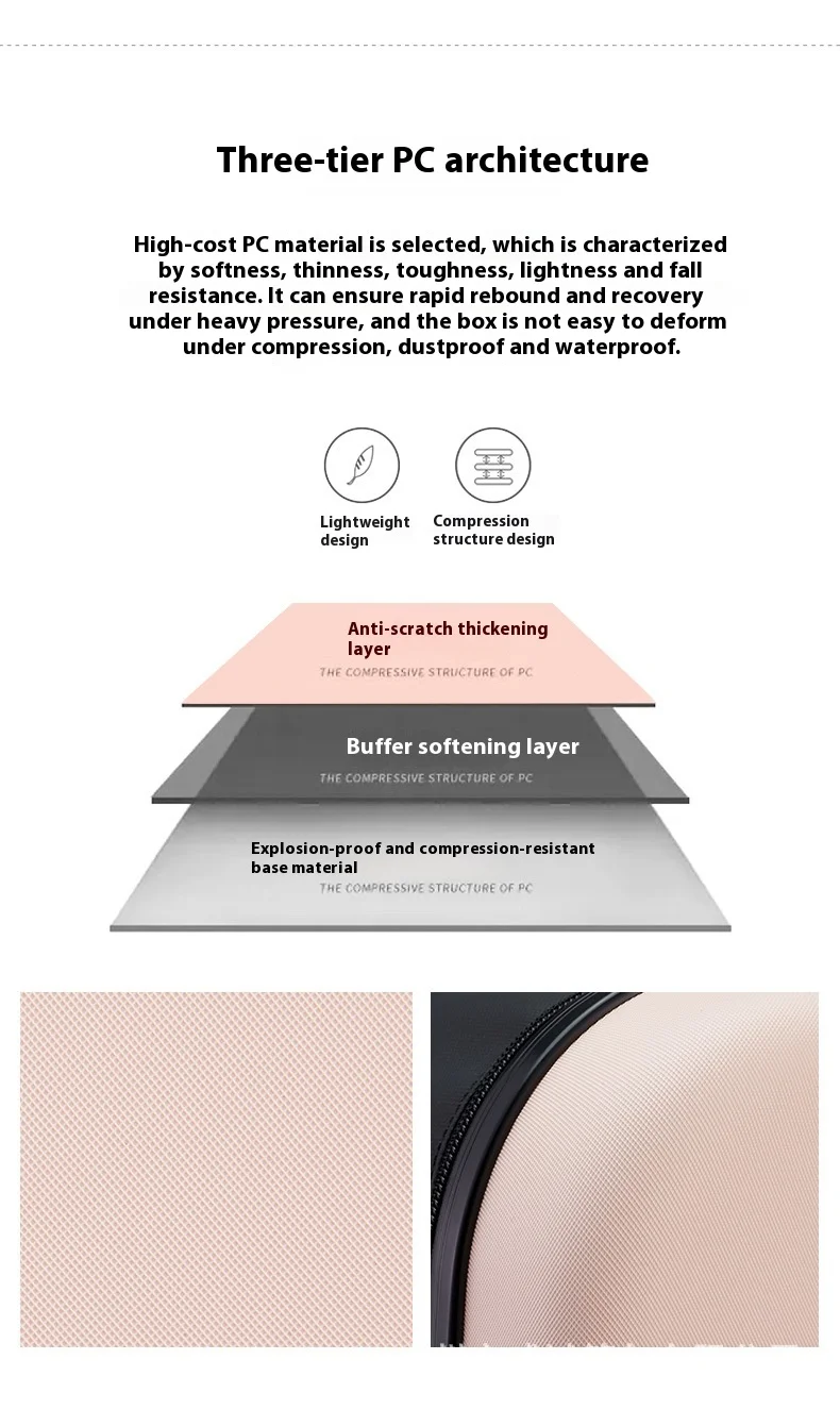 Crafted from high-quality PC material, this luggage ensures durability and longevity.