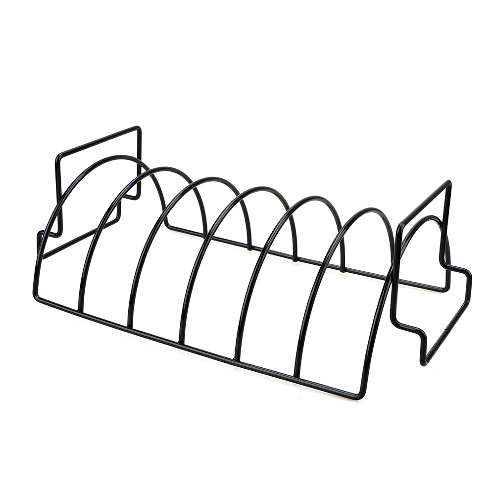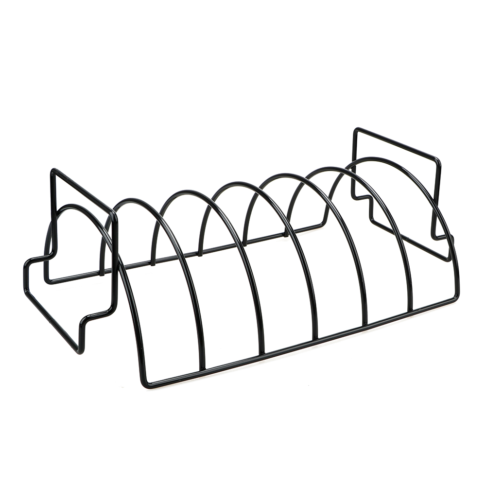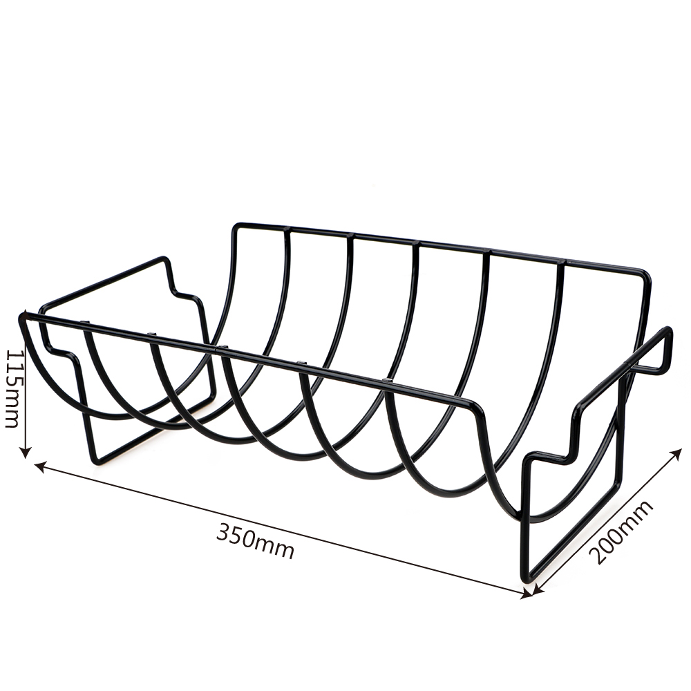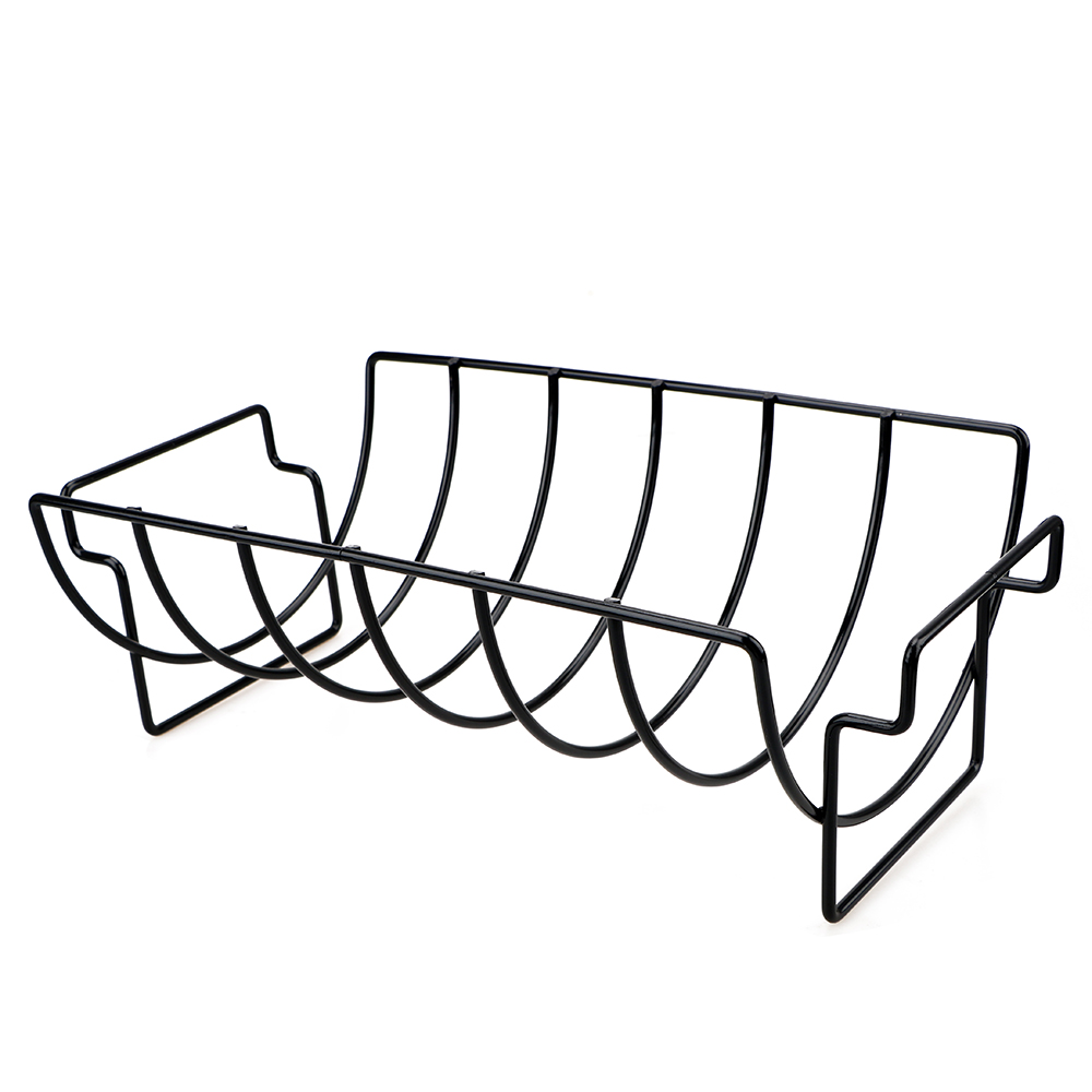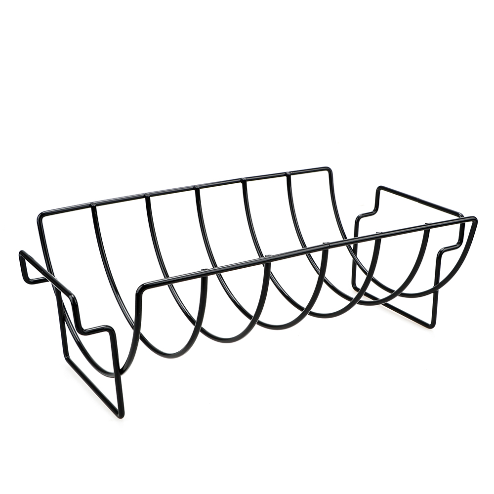 Stack and cook your seasoned ribs to perfection with the Non-stick Rib Rack for barbecue grilling and smoking use. Capable of holding up to six slabs of ribs upright.