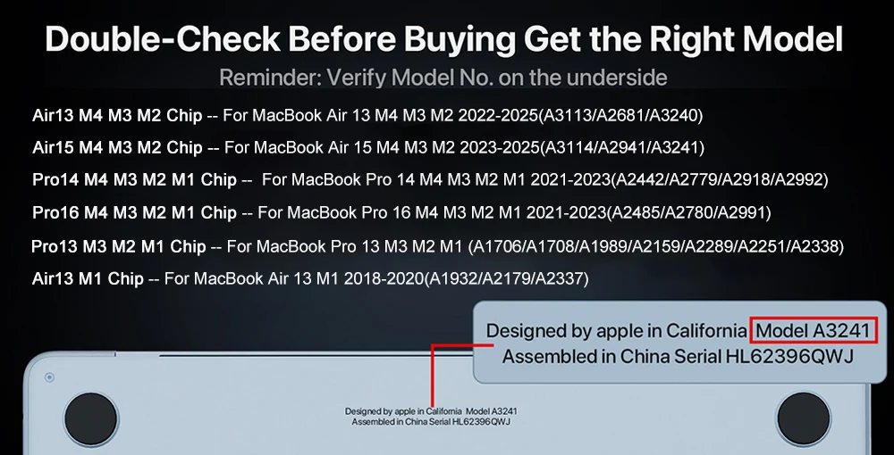 【Check Your Model】:Pls verify Model No. on the underside of MacBook before buying