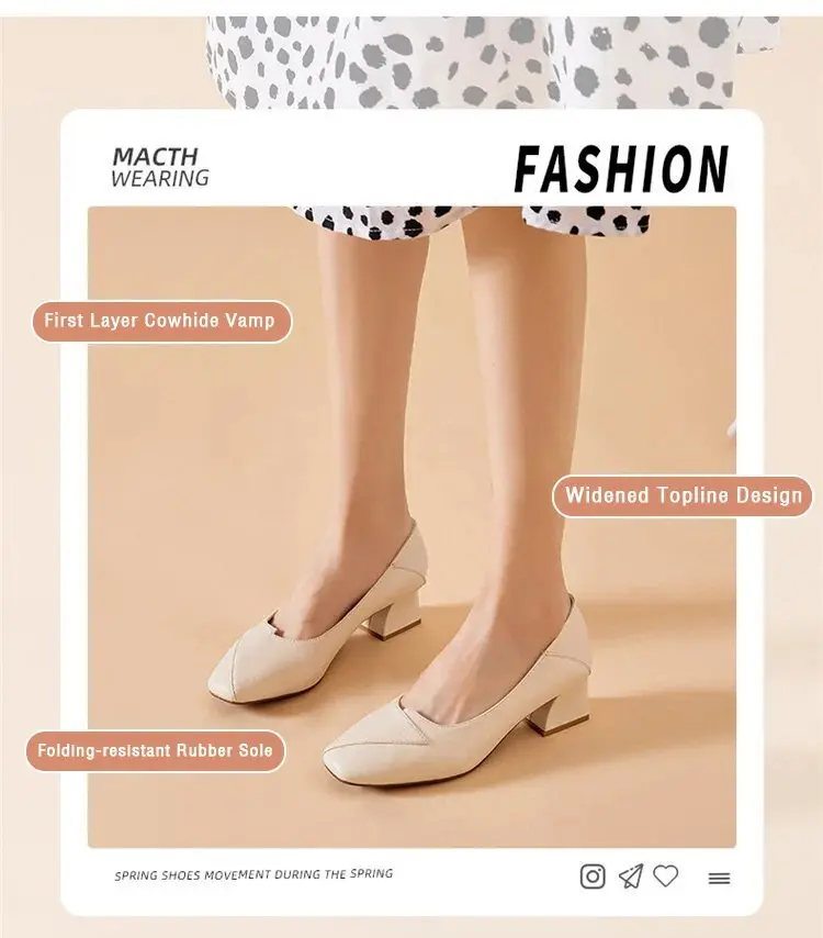 Four Seasons Shoes Soft Bottom Middle-aged Women's Shoes Chunky Heeled Mom Shoes Comfortable Casual Work Leather Shoes