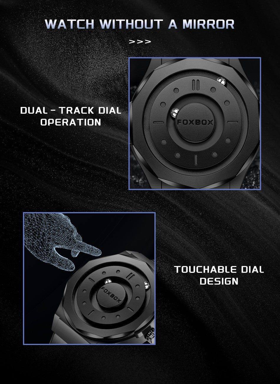 FOXBOX Creative Scrolling Pointer Magnetic Force Men's Quartz Wristwatches Outdoor Sports Waterproof Watch Men Relogio Masculino
