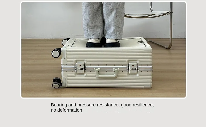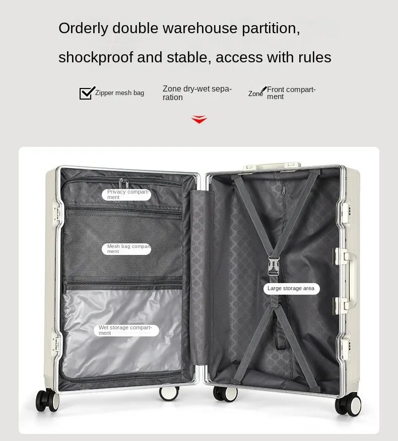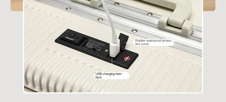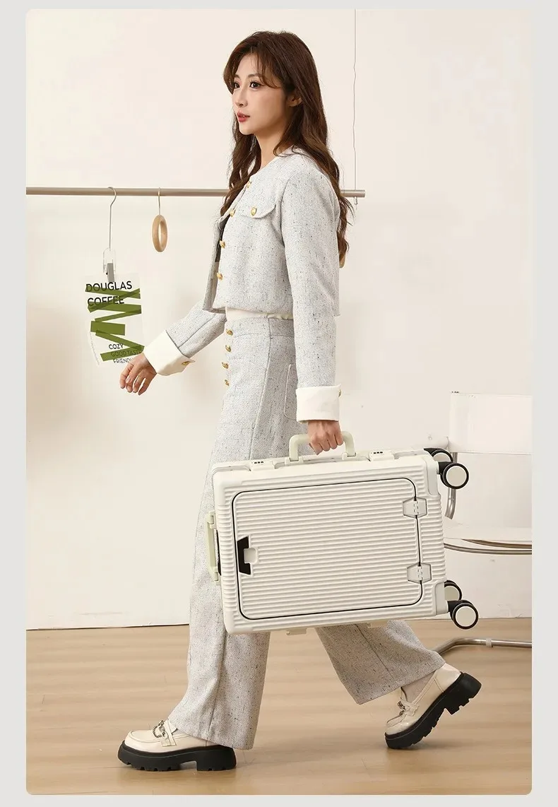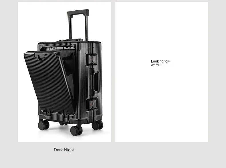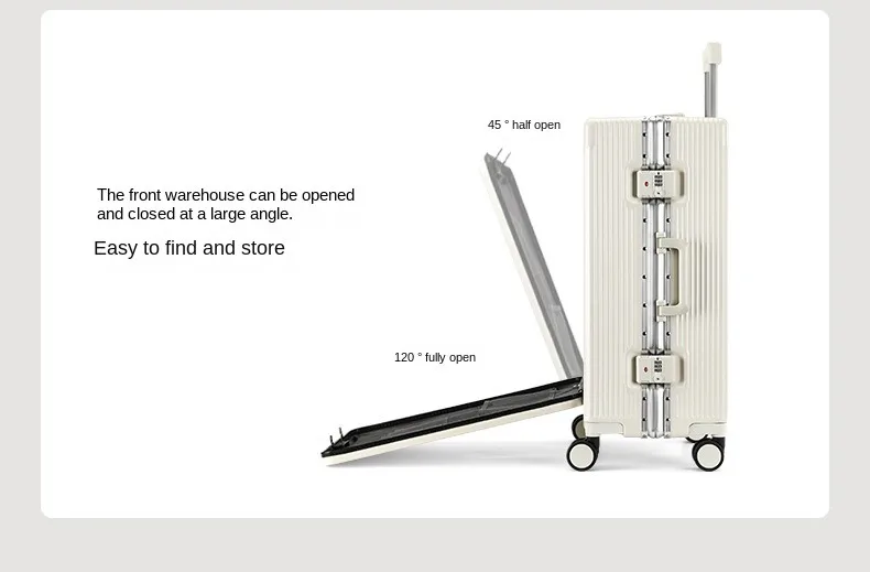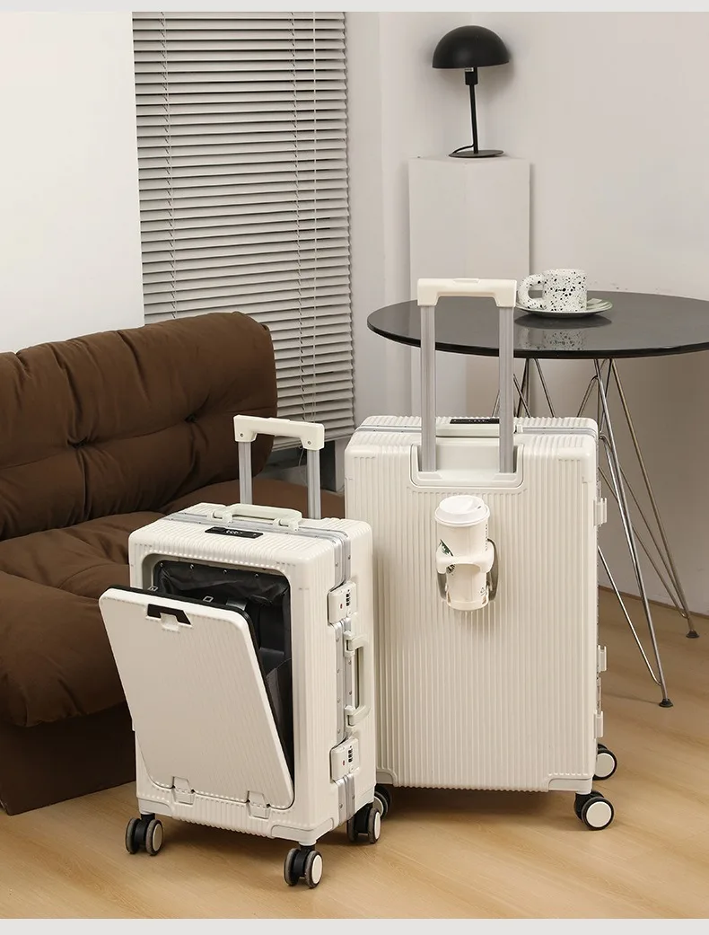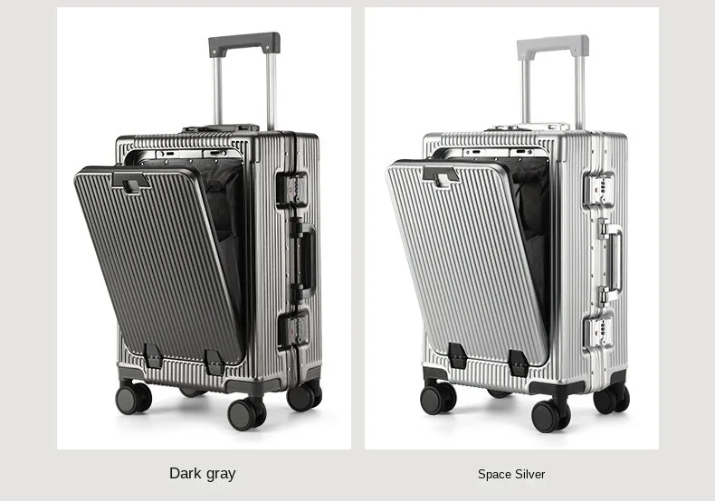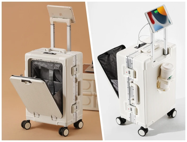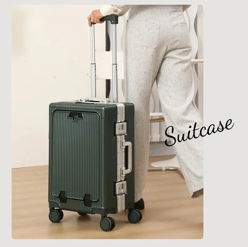 Front Opening Pocket Suitcase with Aluminum Alloy Frame Lock USB Charging Plug Spinner Wheel Trolley Bags Travel Rolling Luggage