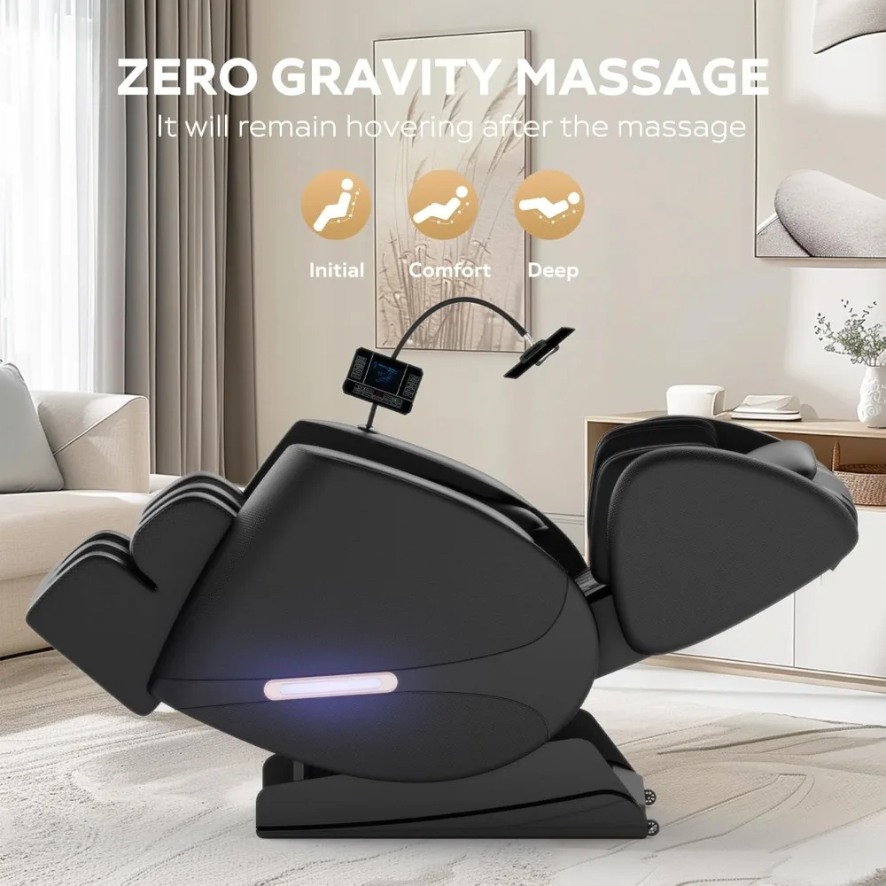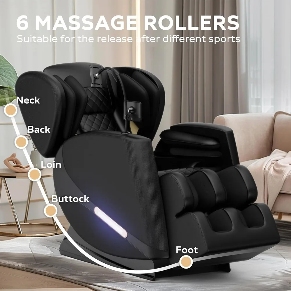 - Humanized Design: The zero gravity massage chair has roller at the bottom so you can easily move around the room. With Bluetooth audio connection function, you can enjoy music while massage. Both sides are equipped with breathing blue atmosphere lights, which can create a comfortable and relaxing environment during the massage. The full body massage chair can accommodate up to 180 pounds and 6 feet tall
