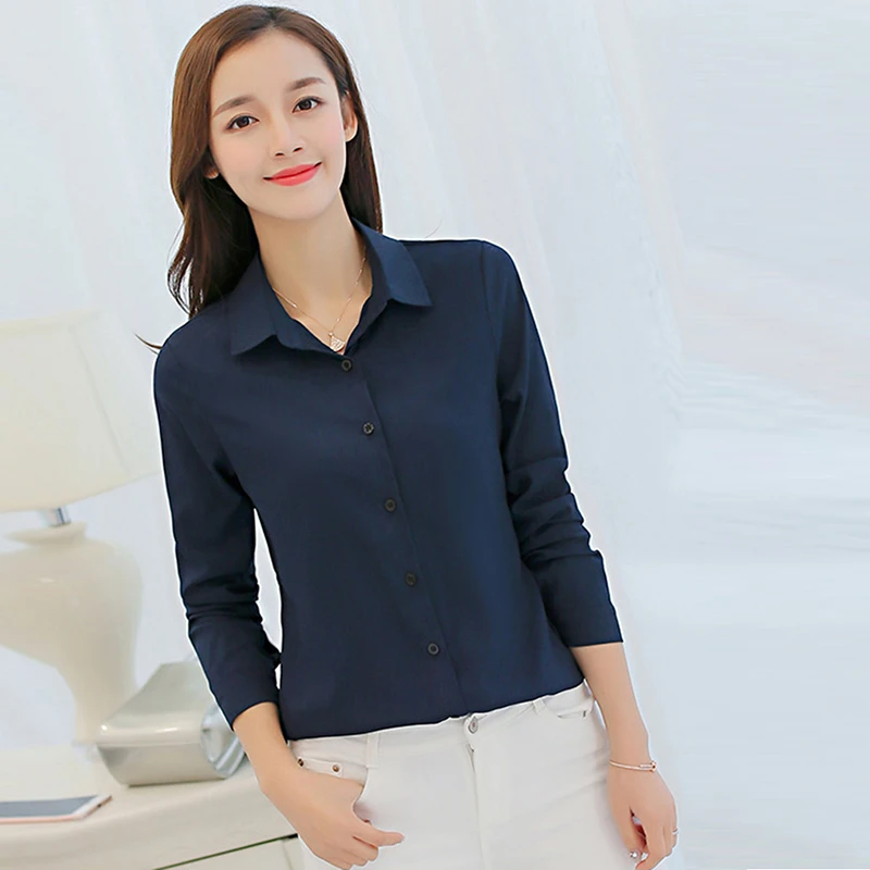OL Work Wear White Blue Blouse Plus Size Long Sleeve Turn-down Collar Formal Elegant Ladies Female Shirt Ladies Tops School