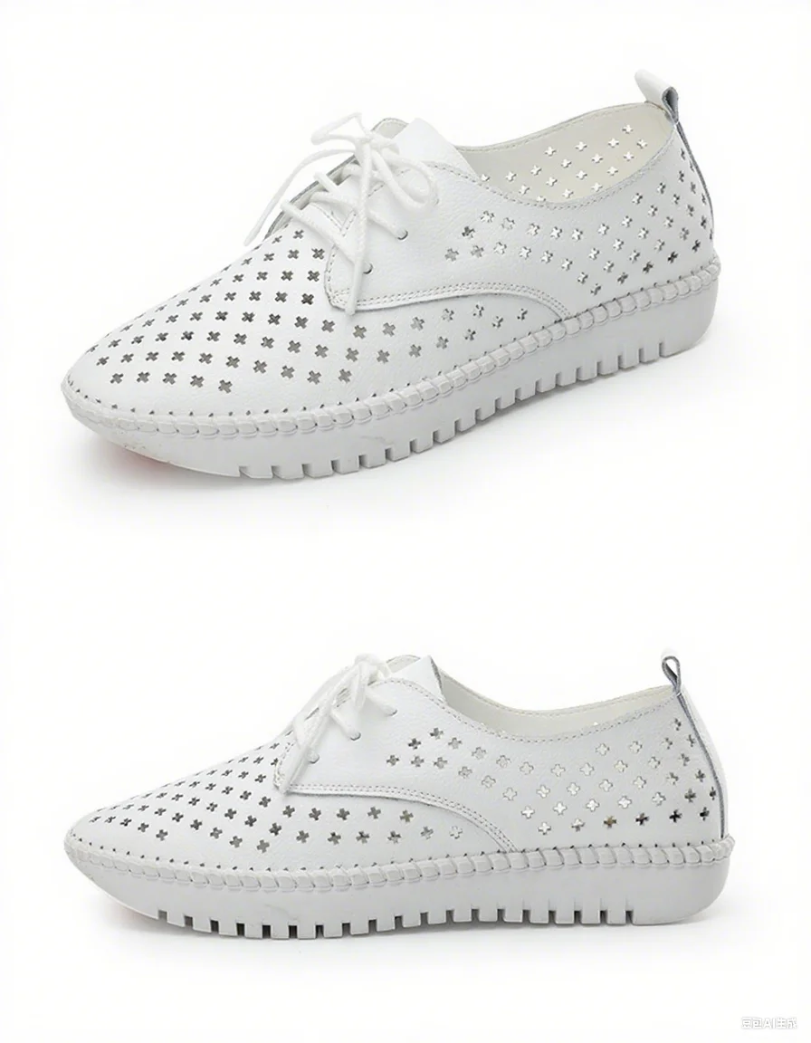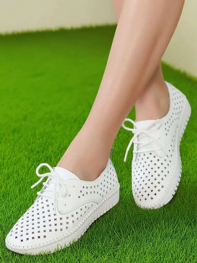 Genuine Leather ladies flats sneakers shoe Women casual loafers shoes female Hollow moccasins White Lace up canvas Boat shoes