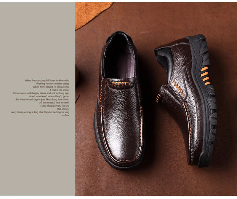 Genuine Leather Shoes Men Brogues Soft Cow Leather Men Casual Shoes New Male Footwear Black Brown Slip-on A2088
