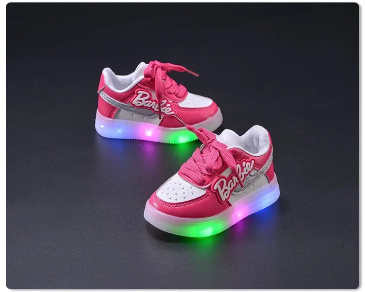 Girls Light-Emitting Sneakers Cartoon Board Shoes Breathable Breathable Leather Casual Shoes Fashion LED Shine Running Shoes