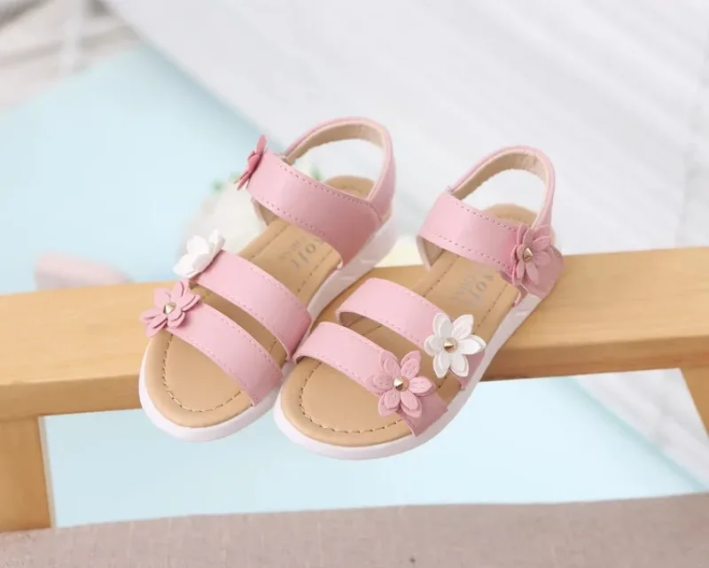 Girls Sandals Gladiator Flowers Sweet Soft Children Beach Shoes Kids Summer Floral Sandals Princess Fashion Cute High Quality