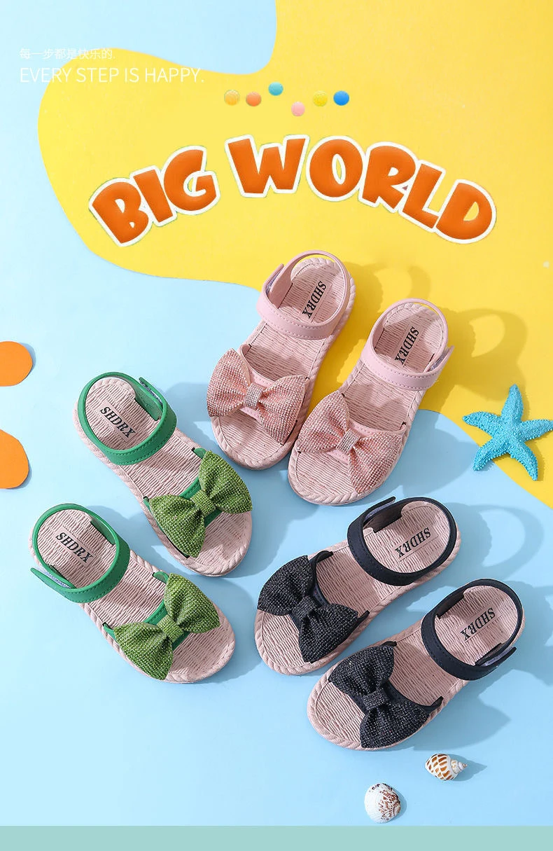Girls Sandals Summer New Arrival Korean Style Big Kids Casual Flat Soft Sole Princess Shoes Versatile Little Girls Beach Sandals