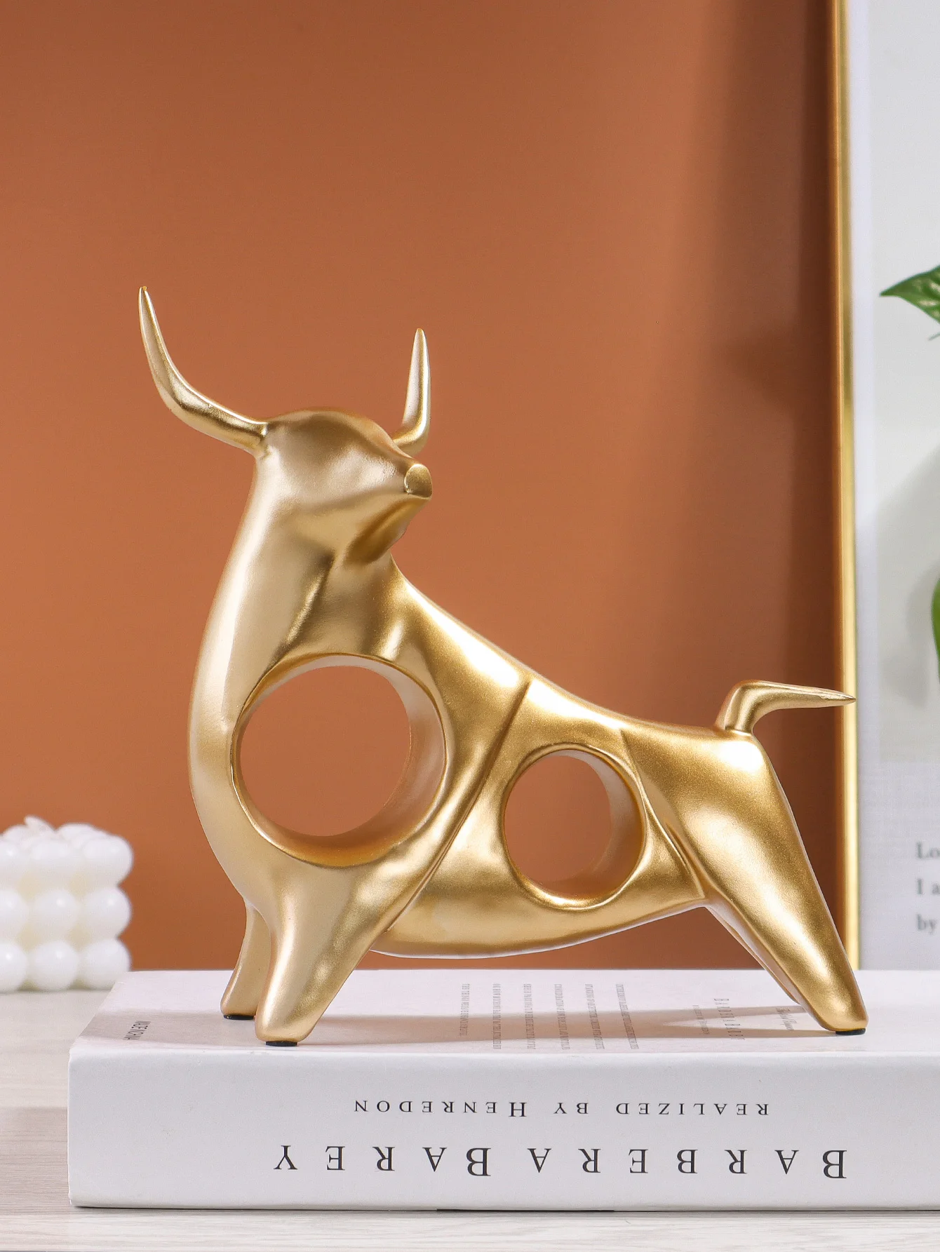 Add a touch of luxury and artistic flair to your home with this Golden Bull Resin Sculpture. It seamlessly complements your living room, bedroom, office, or any space in need of a decorative accent. Symbolizing strength and prosperity, it is an ideal home decor piece and gift choice.