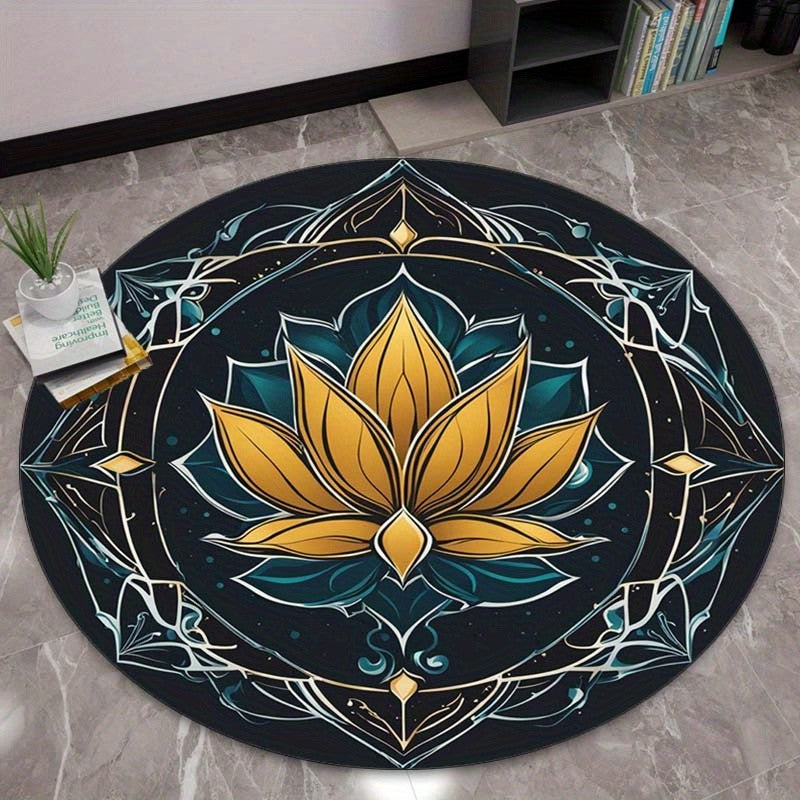 Golden Lotus Mandala Round Rug Crystal Velvet Floor Mat Spiritual Yoga Meditation Room Boho Chic Home Decorative Carpet