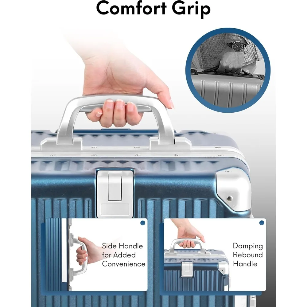 Gorgeous Gem-Blue 3/7 Split Opening Zipperless Aluminum Frame Suitcase, Higher Volume 22x14x9, Airline Approved Carry-On Luggage