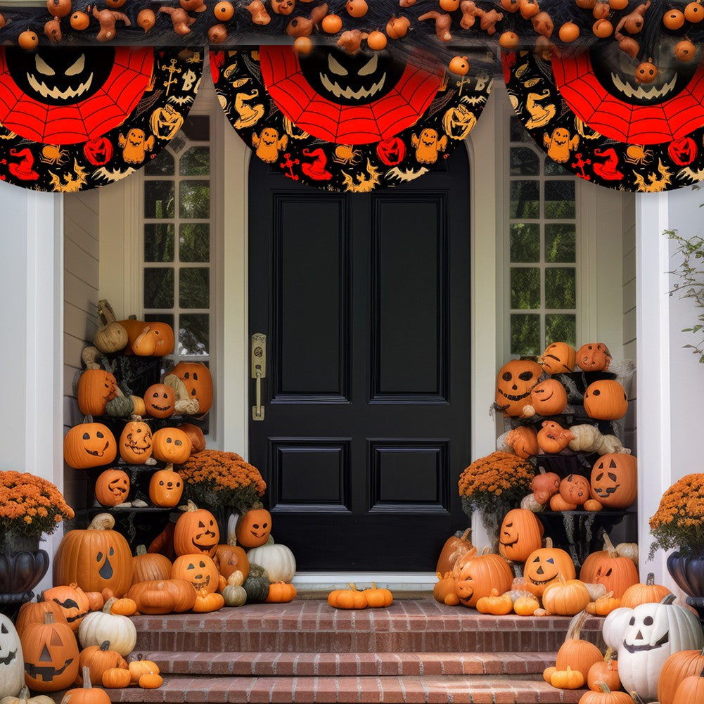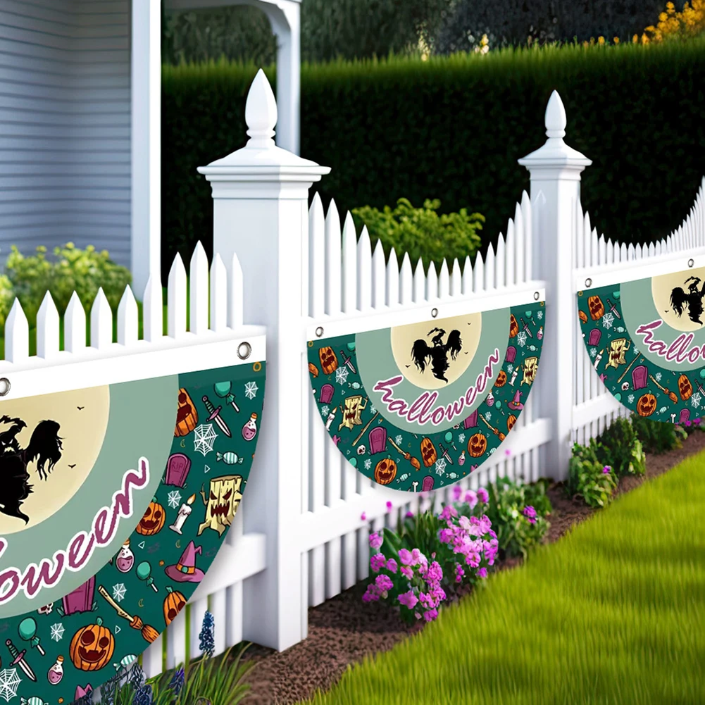 Halloween Fan Flag Spooky Halloween Bunting Flag Set for Outdoor Yard Decor Skull Ghost Pumpkin Banner for Porch Fence Kitchen