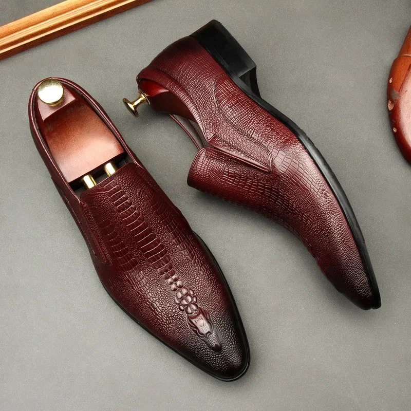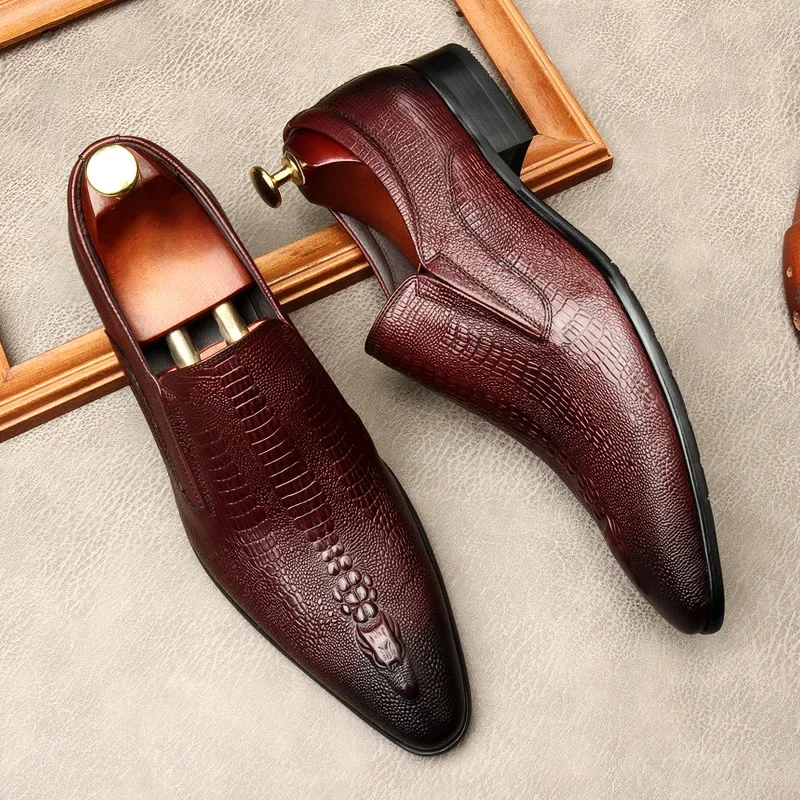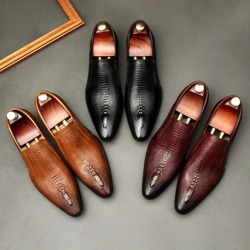 Handmade Mens Wedding Oxford Shoes Black Blue Genuine Leather Flat Dress Shoes Crocodile Pattern Summer Business Formal Loafers
