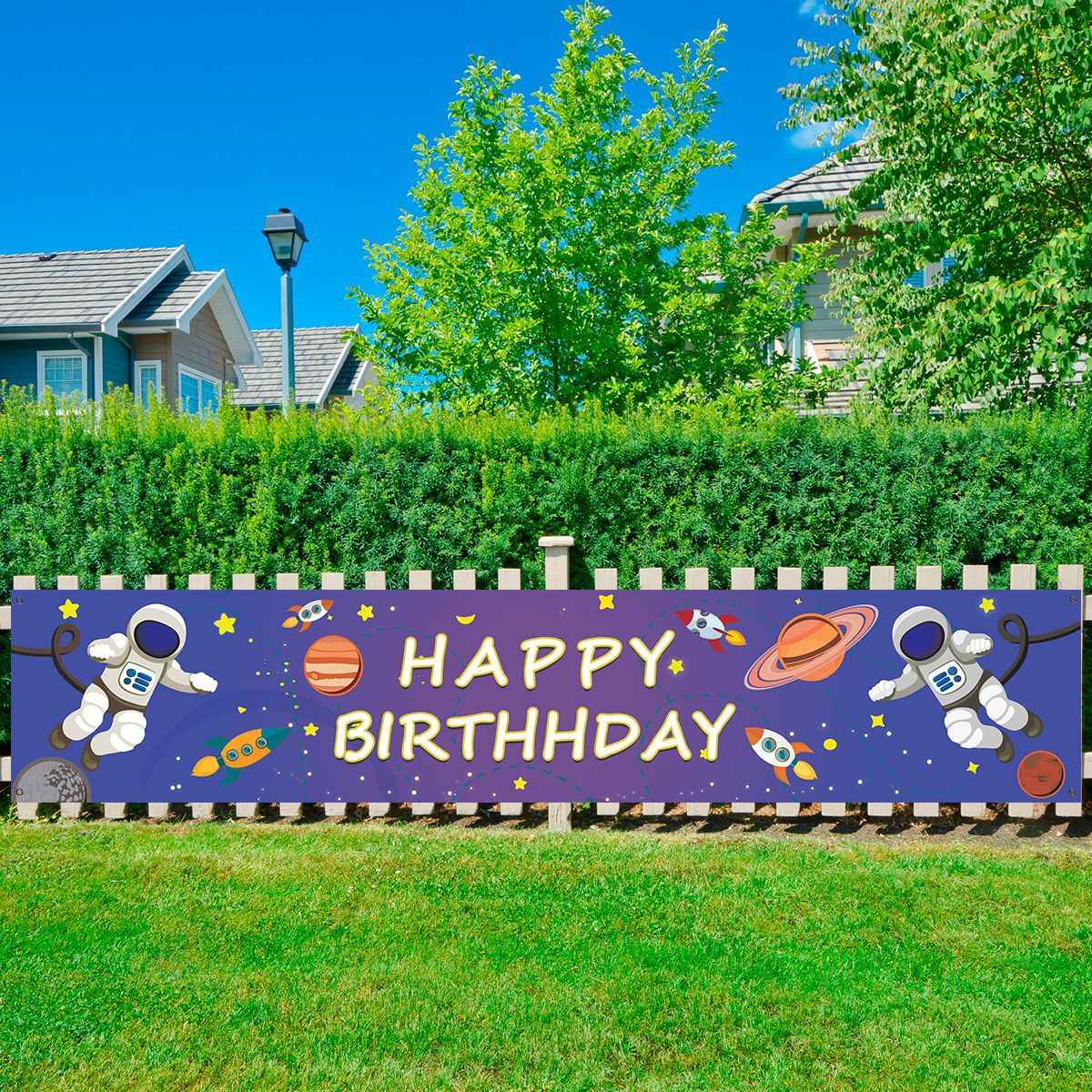 Easy to Use: The banner comes with high quality gold brass buckles at all four corners, and each package comes with a black strap that is long enough to be easily hung up in just a few minutes of your time. You can hang it on trees, yards, fences, ceilings, doorways, windows, arches, etc. anywhere you want.