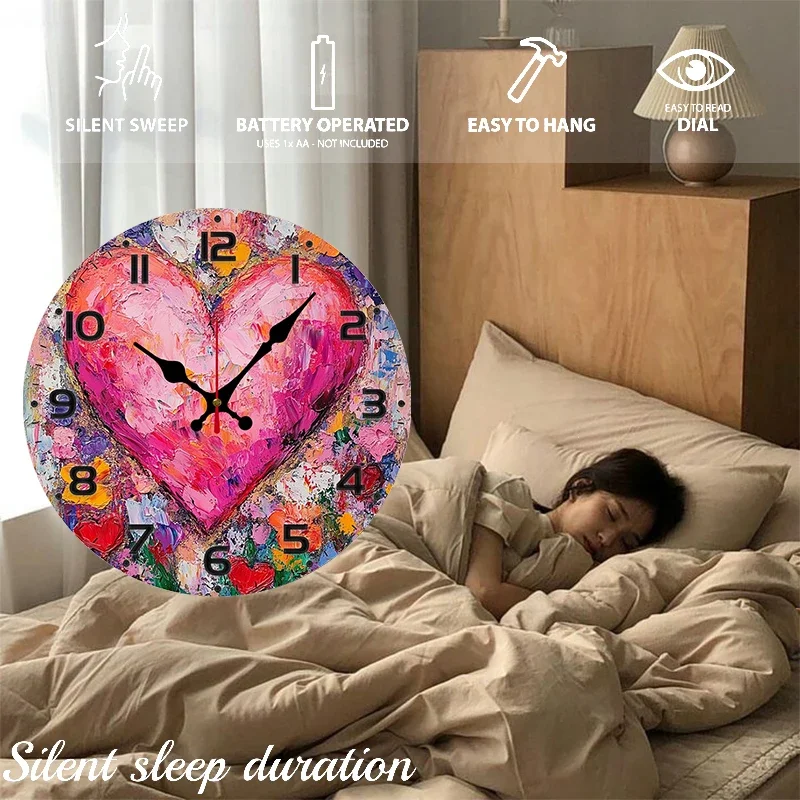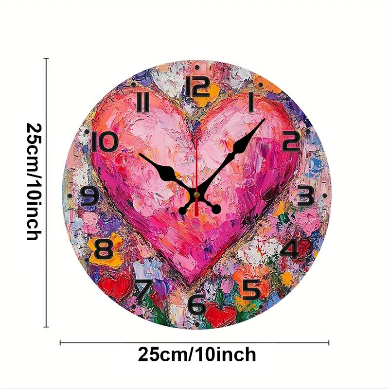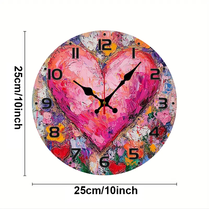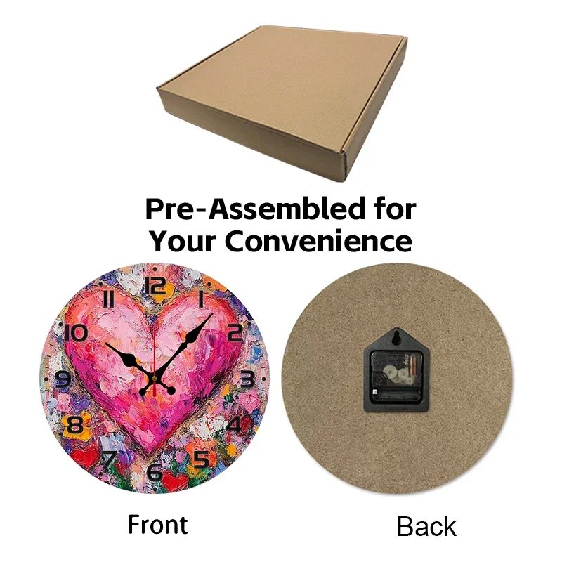 Heart Art Floral Wooden Round Silent Hanging Wall Clock, Suitable For Living Room, Office, Study Room, Bedroom, Home Decoration
