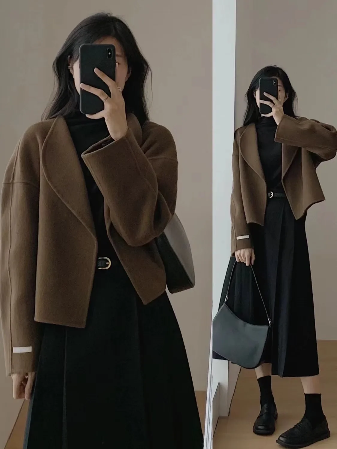 Hebe Style Short Thickened Double-Faced Cashmere Woolen Coat Women's Autumn Winter Fashion Small Size Suit Elegant Feel