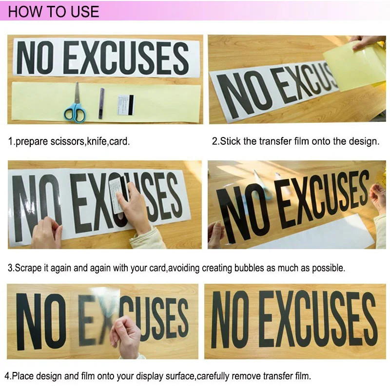-4.place design and film onto your display surface , carefully remove transfer film-If you need other size, please email us, we will give you a personalize link.