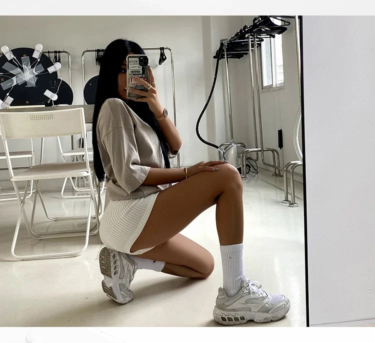 HELIAR Women High Waist A-line Shorts Thin Knit Sports Shorts For Women Casual Running Slim Bodycon Trousers 2025 Spring Summer