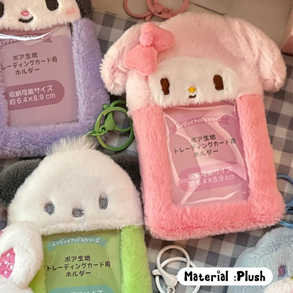 Hello Kitty Plush Card Case Keychain Kuromi Melody Card holder Kawaii Photo Card Display Sleeves Cute Bag Gifts