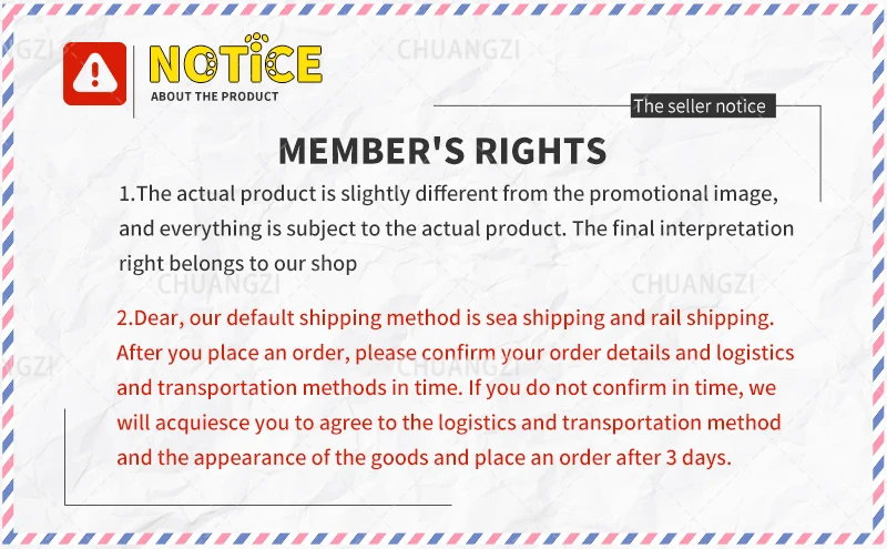 Note:Our service does not include handling customs fees and customs clearance issues incurred by express logistics. And during the transportation, any form of refusal to pay or dispute will not be accepted.Thank you for your understanding!