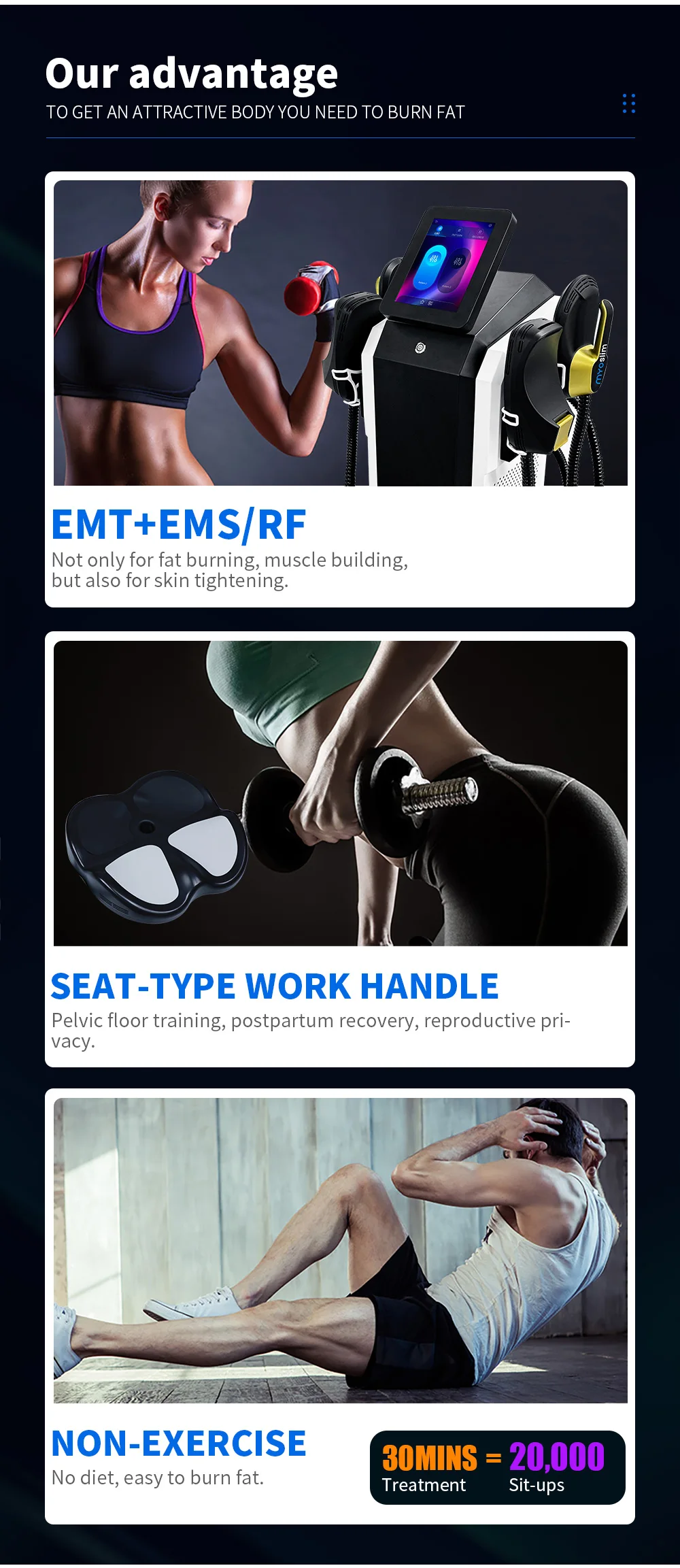 Functions: body contouring, body slimming, body sculpt, muscle build, fat removal,skin tight, butt lift, muscle build, muscle stimulation,EMS Cellulite Reductions