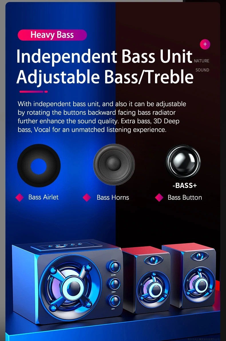 HIFI 3D Stereo Speakers Colorful LED Heavy Light AUX USB Wired Wireless Bluetooth Audio Home Theater Surround Sound Bar TV