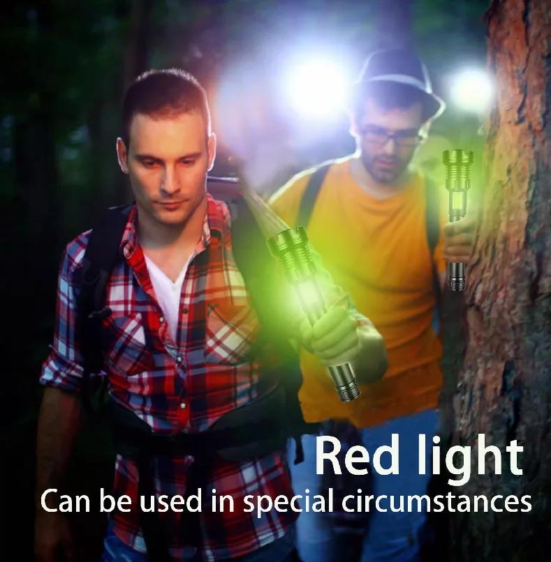2. Equipped with COB side lights, which have white light and red light, and can be used in various usage scenarios such as daily lighting, camping, and hunting.