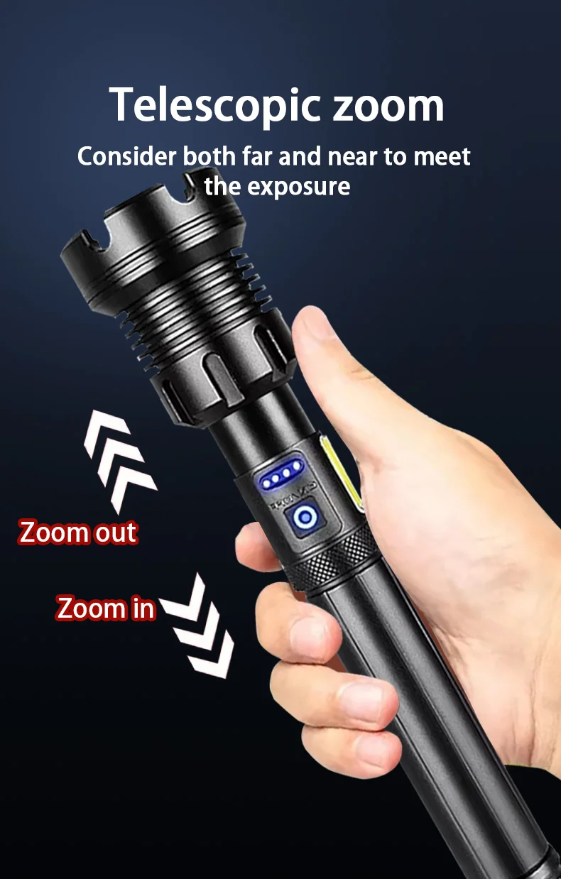 Feature19: Most Powerful Torch XHP390 Flashlight 10000mah Large Capacity Rechargeable Lamp