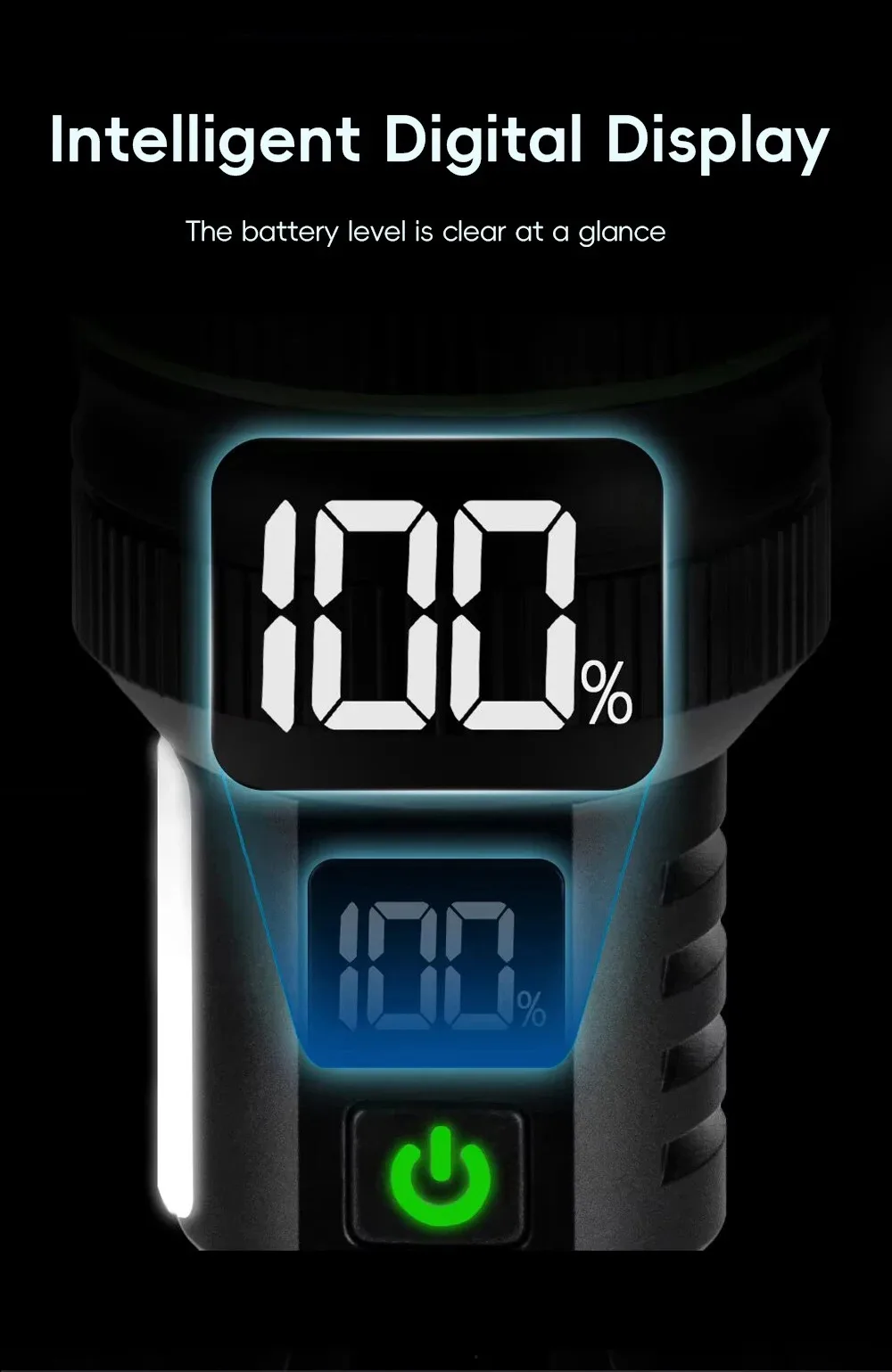 Click On The Main Light(4 modes):Bright Light-Medium Light-Strobe-SOS