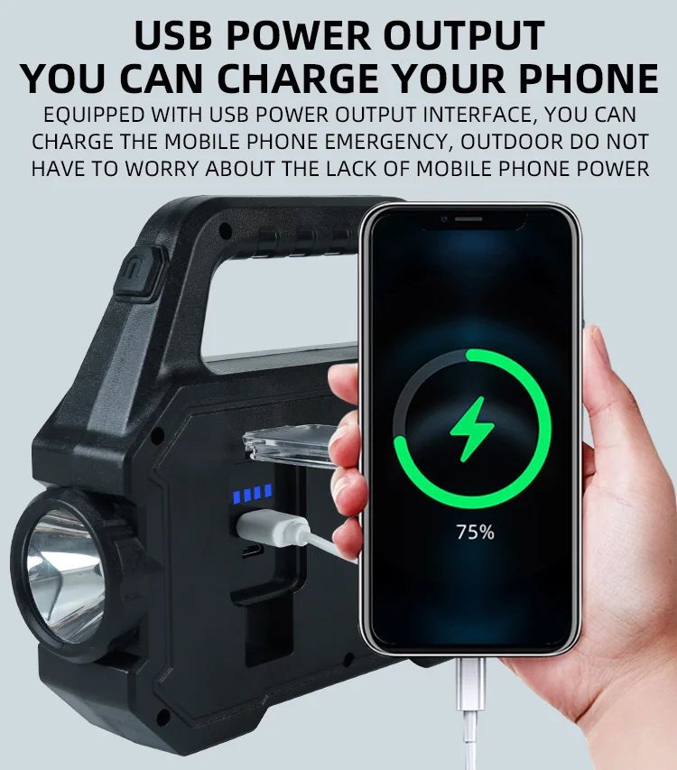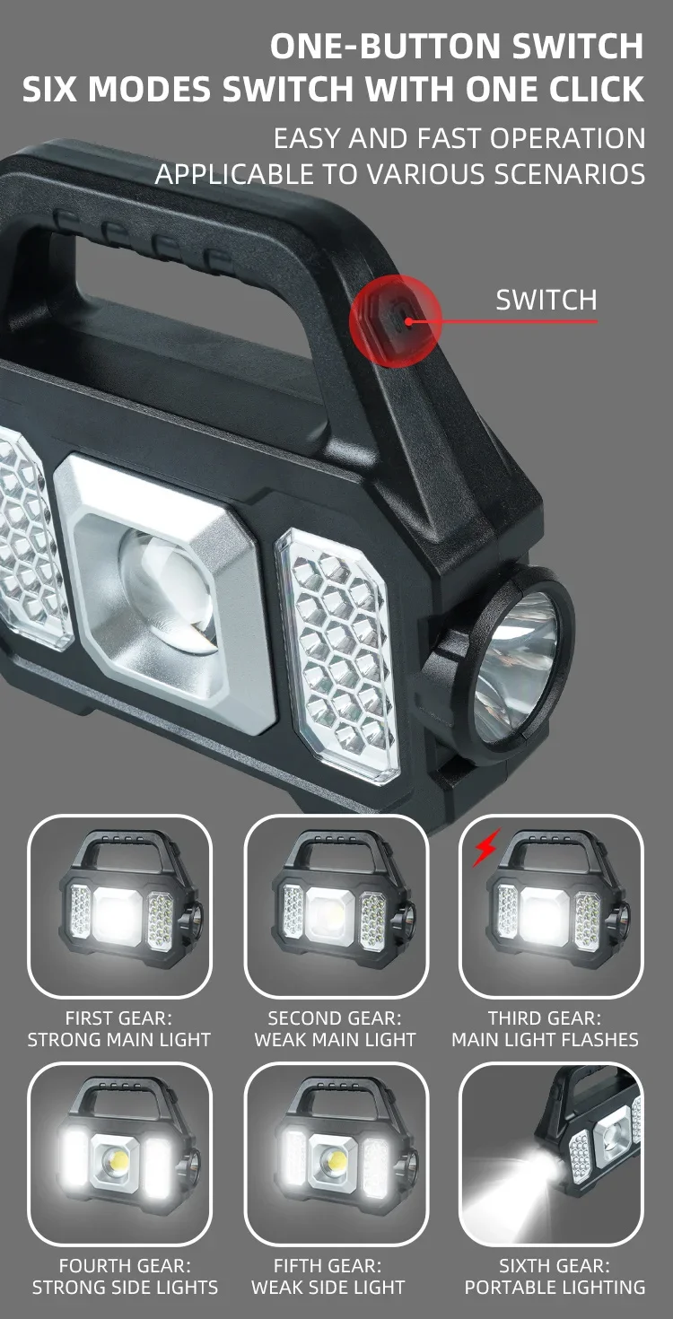 High Power Led Flashlights Rechargeable Camping Work Light Multi Functional Portable Light Solar Charging 6 Lighting Modes ?