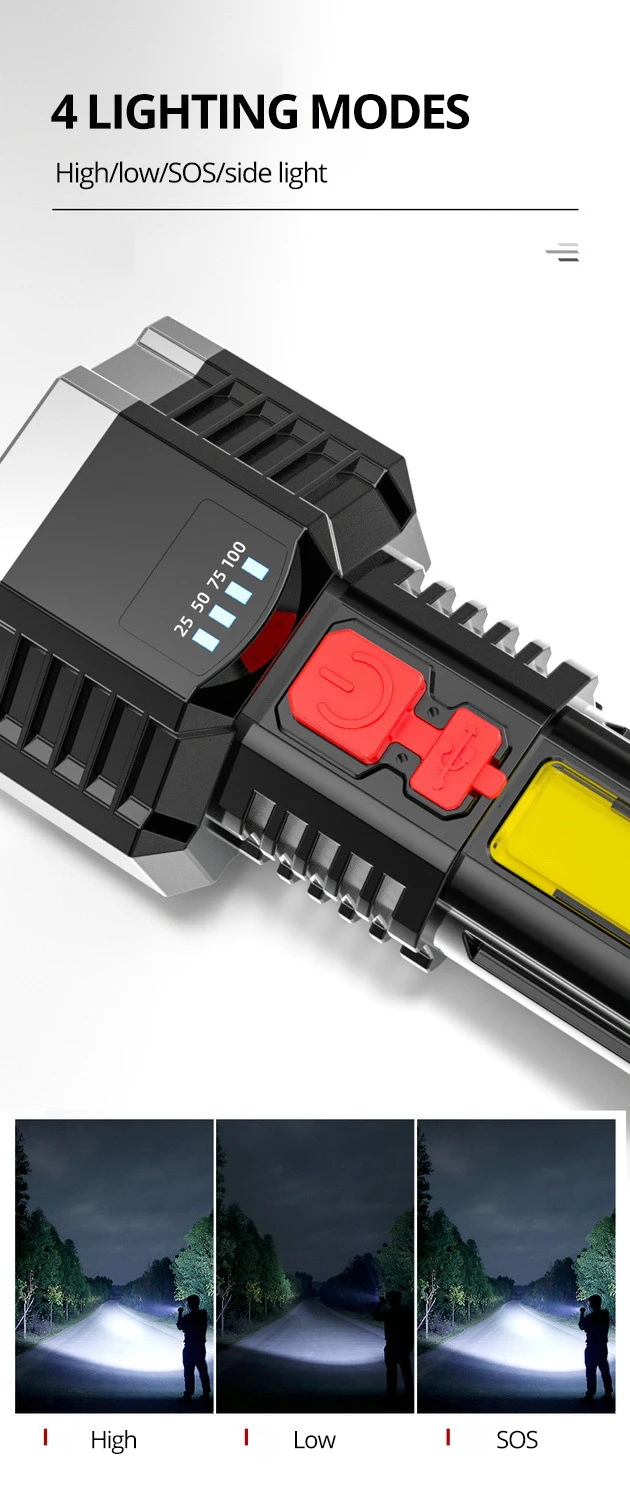 • Waterproof Design :The flashlight is designed to be waterproof, making it ideal for use in all weather conditions and ensuring that it remains functional even in the rain.