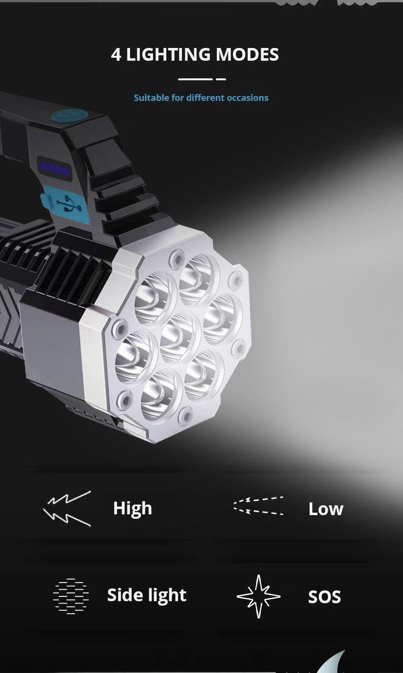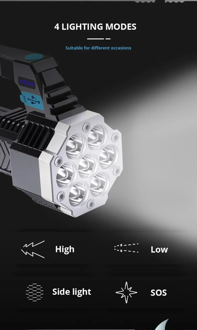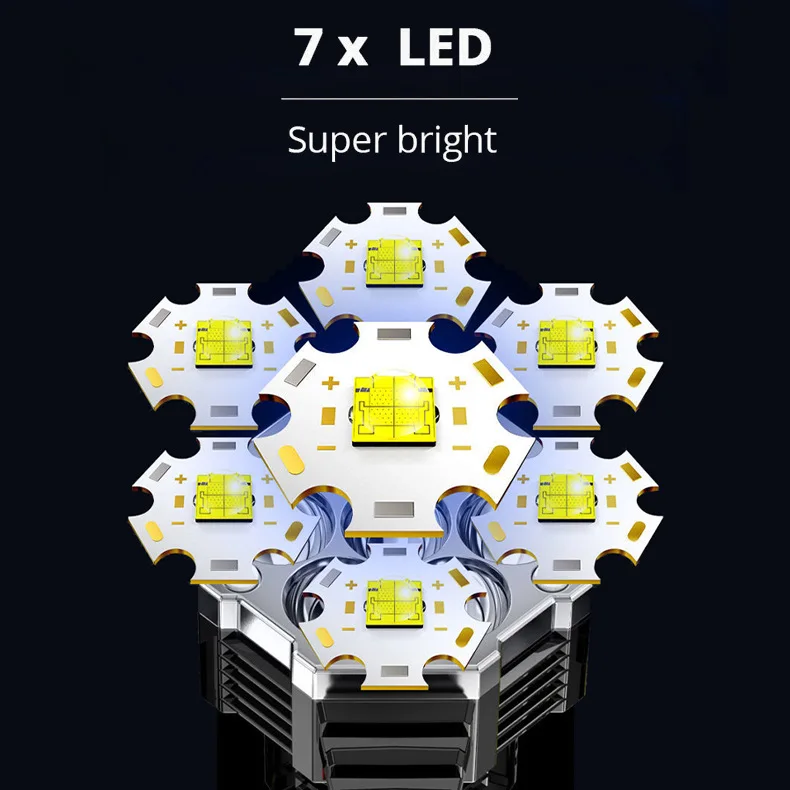 • High Power LED :The flashlight features 7 high power LED lights that provide a bright and clear beam, making it perfect for outdoor activities like camping and hiking.