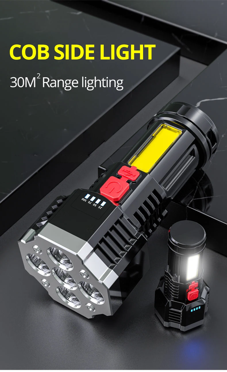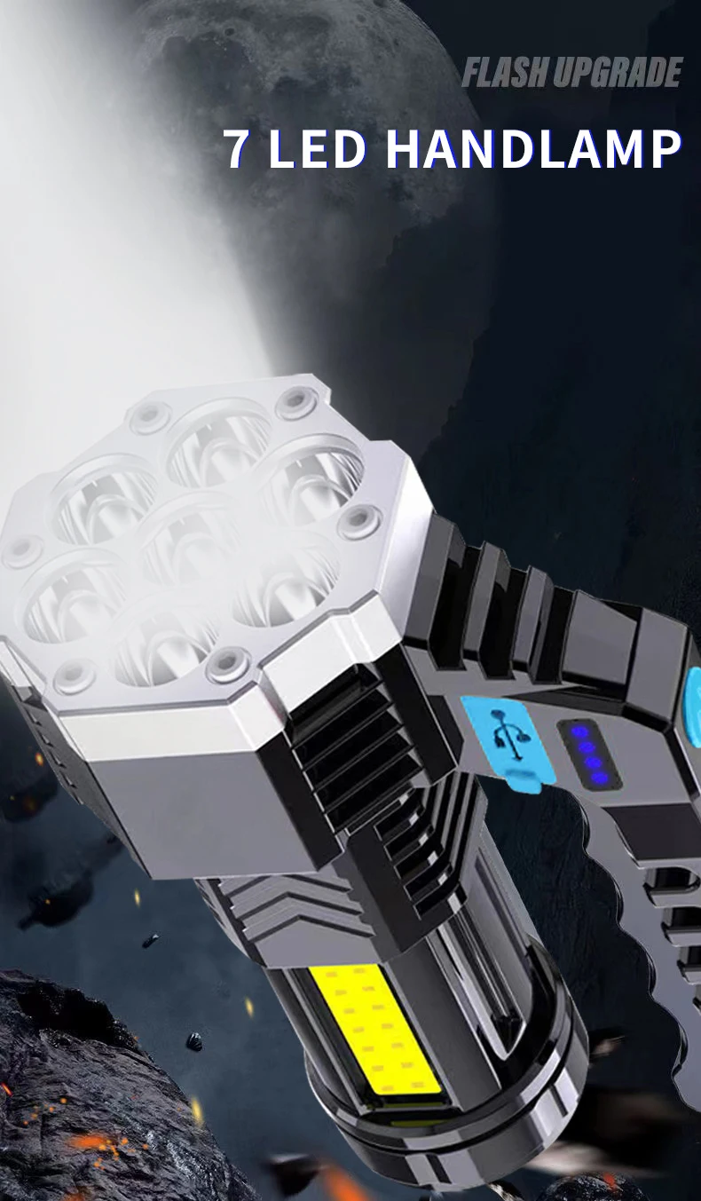 High Power Rechargeable Led Flashlights 7LED Camping Torch With Cob Side Light Lightweight Outdoor Lighting ABS Material