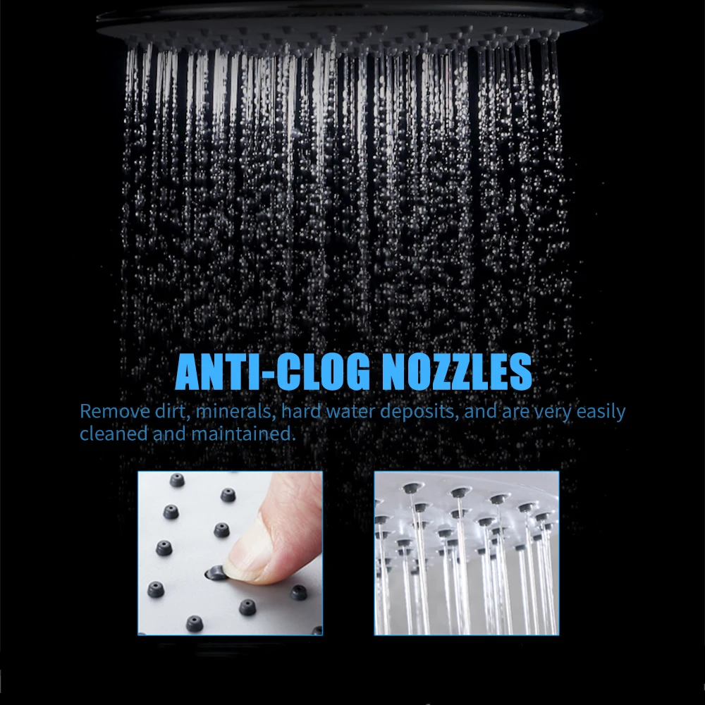 [Anti-clog Nozzles]Self-cleaning silicon jet nozzles can remove dirt, minerals, hard water deposits, and are very easily cleaned and maintained.