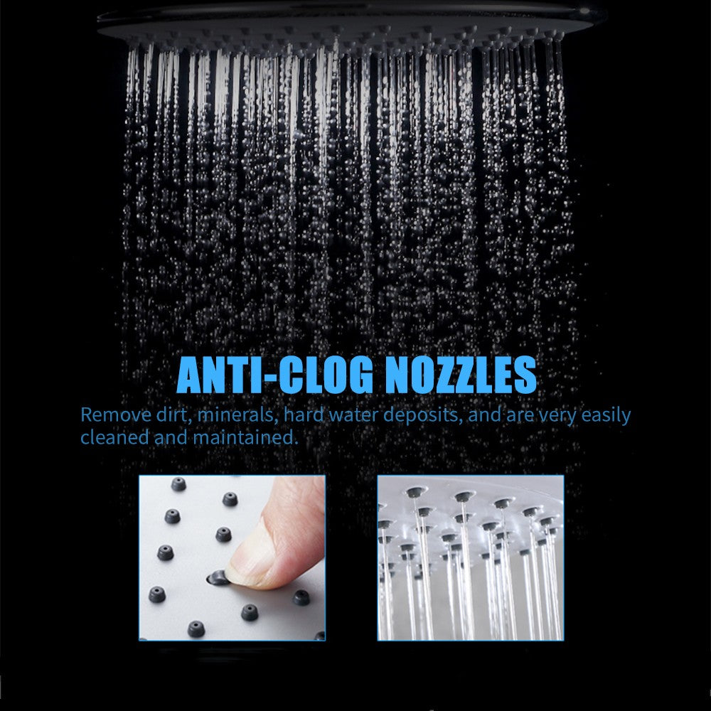 The showerhead is made of premium ABS material and a polished chrome finished, and it is anti-corrosion, rust-proof and durable. Self-cleaning nozzles can stop natural calcium from accumulating to prevent blocking. The high-pressure shower head is designed with the most advanced water-saving, and pressurizing technology, give you a comforting shower experience.
