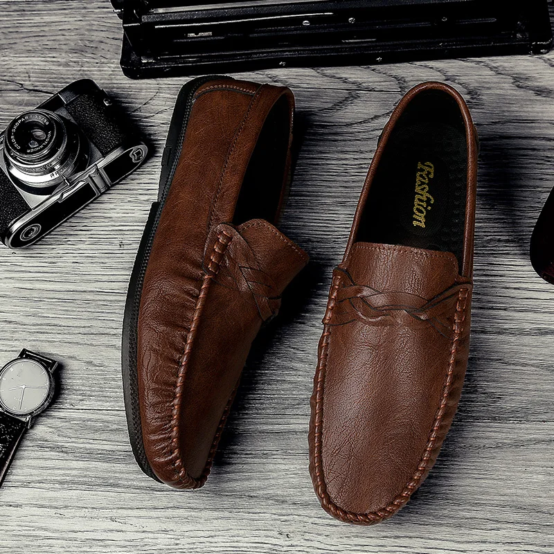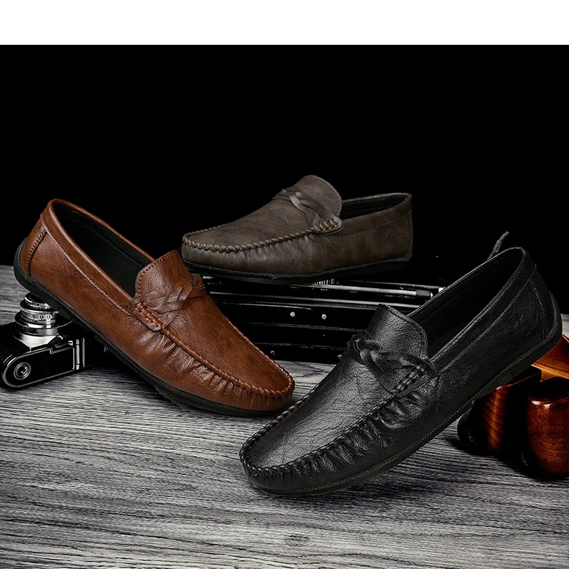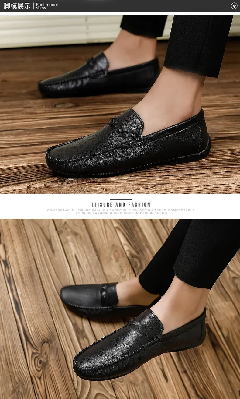 High Quality Leather Men Casual Shoes Comfortable Light Men Loafers Formal Men Dress Shoes Breathable Slip on Men Driving Shoes